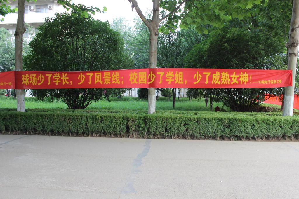 在欢送2016届毕业生期间,我院2013级各班同学自发地组织同学以做条幅的形式欢送2016届毕业生,从字里行间流露出他们对学长的情真义切和深深祝福!