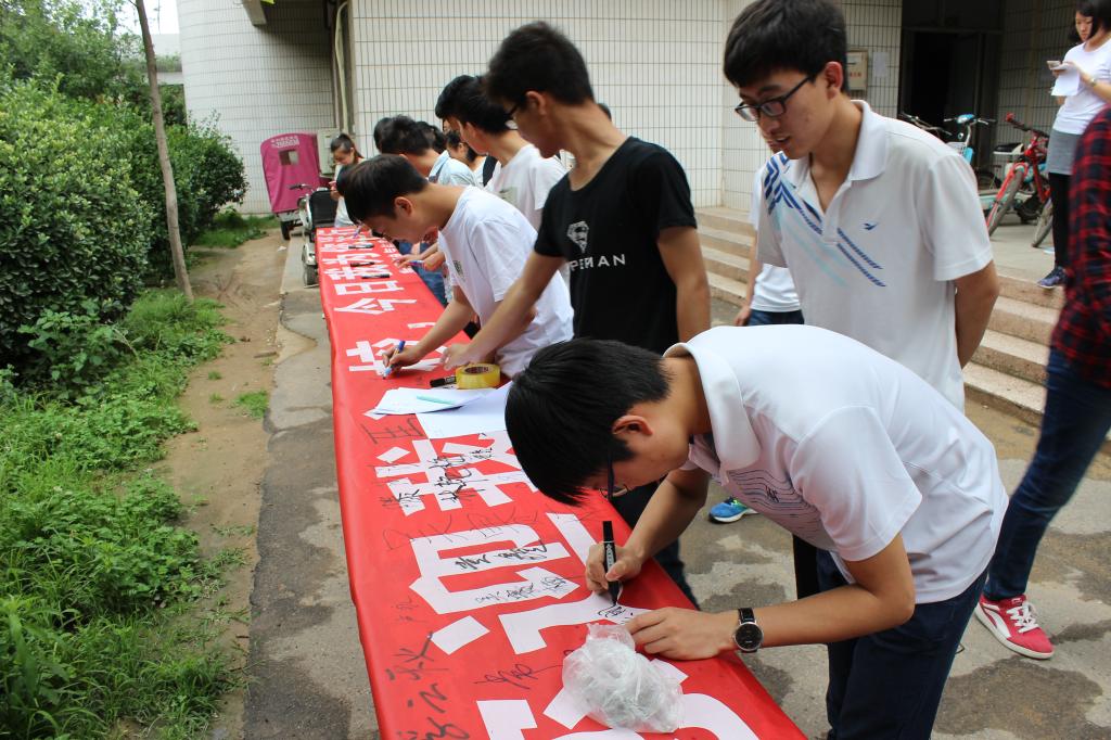 为欢送即将毕业离校的2016届毕业生,我院团总支于6月5日在物理实验楼西侧举行了“昨日您迎我入校,今日我为您送别”签名活动。参与本次活动的有我院各级学生。在本次活动中,由百余名毕业生在印有“昨日您迎我入校,今日我为您送别”的条幅上郑重签名留念,表达了学子们对母校的眷念,对师长的感激,对校友的祝福和对大学生活的浓浓惜别之情。与此同时,低年级的同学也参与其中,纷纷在签名幅上签下自己的名字,从而表达他们对学长学姐深深的祝福。希望在离开母校的日子里,学长学姐们可以乘风破浪展翅高飞,干出一番事业,给自己的人生一份满意的答卷。