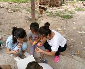 物理学 A 组实践团于 7 月 3 日上午 10 点到达爱德孤儿院,并受到了院长及孩子们的热烈欢迎。活动当天,服务队秉着送温暖送关爱的原则,为孤儿院的孩子们带去了大量的食物及书籍。当一本本的书放在孩子们的手里时,孩子们的笑脸灿如朝阳。阳光像顽皮的孩子在一张张的笑脸上跳跃,温暖着大家的心。