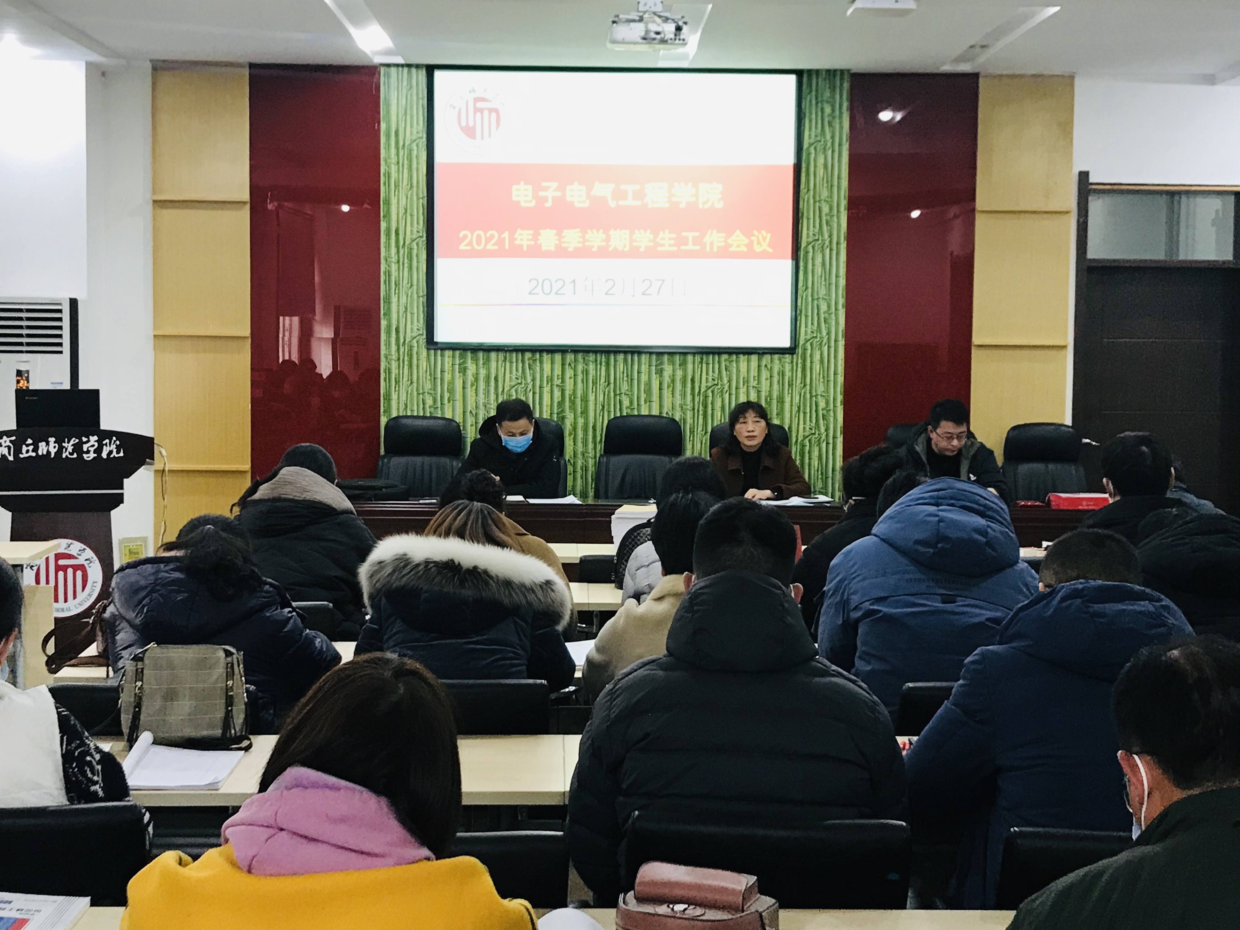 为进一步做好新学期学生工作,2月27日,威廉williamhill于睢阳校区物理楼会议室召开2021年春季学期学生工作会议。学院领导班子成员、全体辅导员和班主任参加了会议。