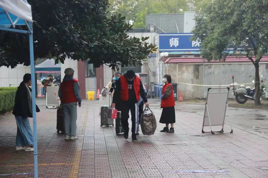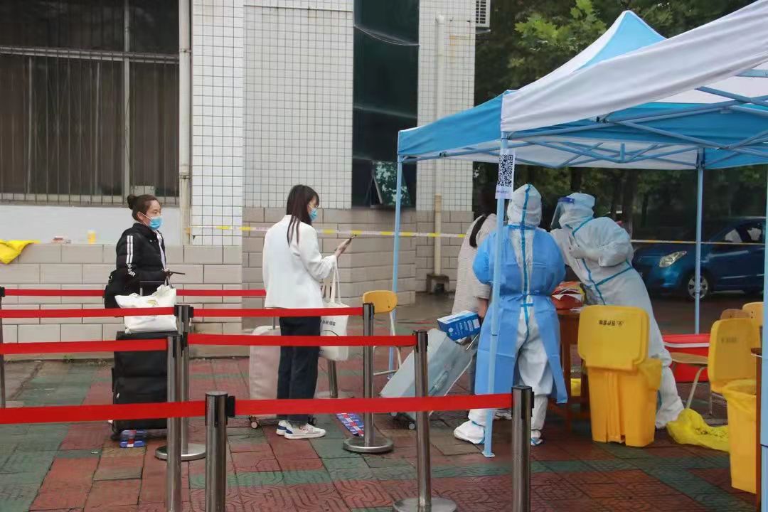学院设立“一条龙”的返校服务,在学院门口安排了志愿者协助学生有序的完成返校工作。首先,志愿者检查返校生的行程码、健康码、复学证明及核酸检测的截图,紧接着进行消毒、体温测量、更换口罩,信息审核统计的工作,确保学生安全返校;进入学校后,由学院专用车分别载着学生回到宿舍,并在核酸检测结果出来之前,在宿舍进行隔离。