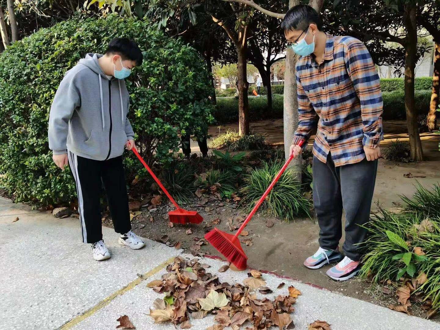 活动开始,生活委员结合卫生区域的大小和卫生状况等合理的分配打扫人员,并发放了扫帚、镊子、搓斗等工具。在活动中,同学们不怕脏、不怕累,互相帮助,将各个角落的落叶、枯枝、垃圾等全部清理干净并放入垃圾桶内。打扫结束之后,同学们自觉将打扫工具放回指定位置。最后,学生协助生活部进行检查。