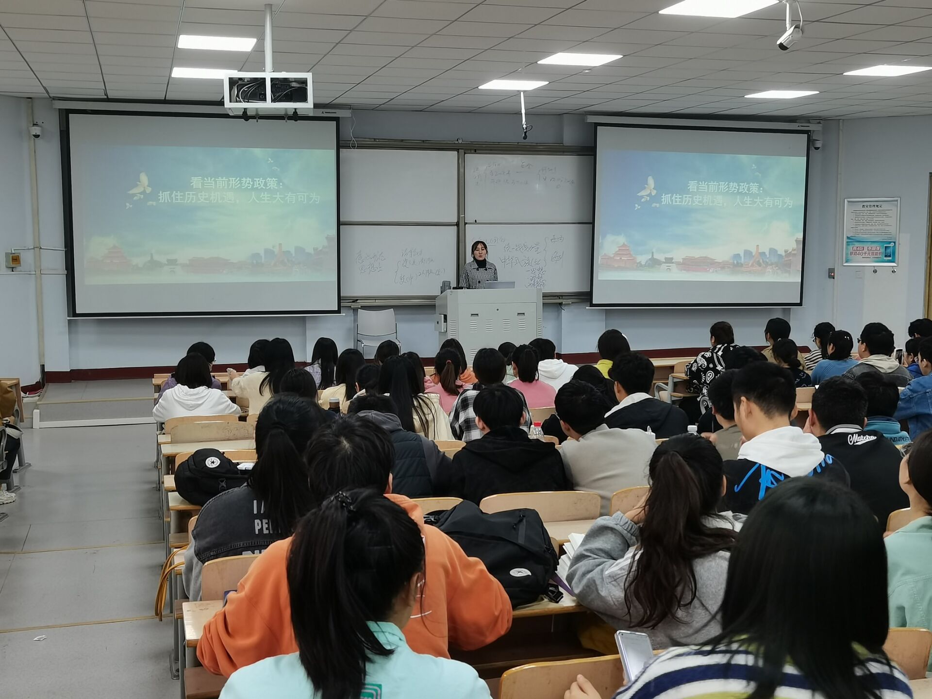 10月28日,威廉williamhill第一学生党支部书记张佳琪于睢阳校区为全体入党积极分子讲授以“看当前形势政策:抓住历史机遇,人生大有可为”为主题的党课。