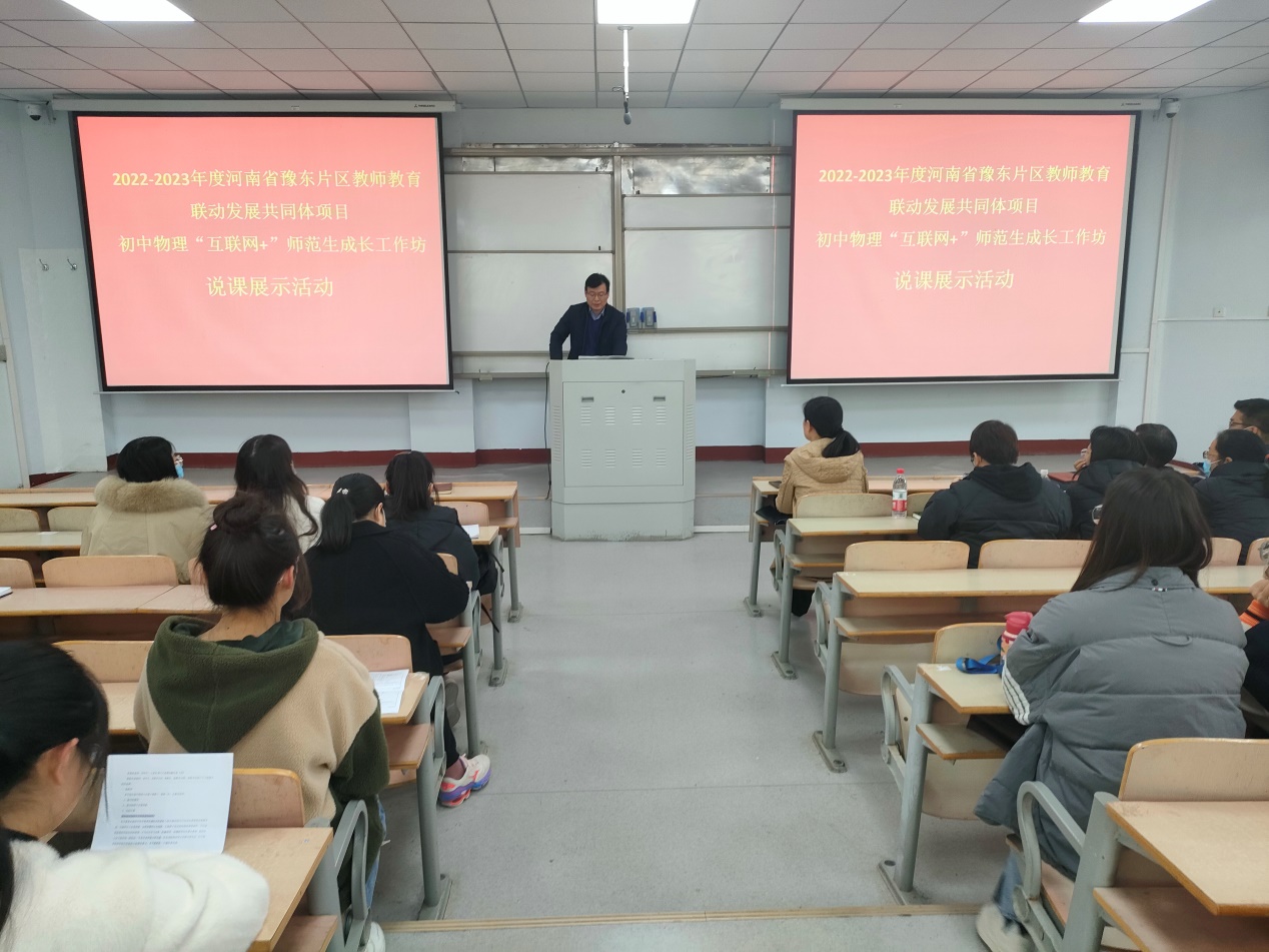 为进一步提高师范生教育教学技能,夯实教育教学基本功,强化专业发展,3月24日下午,威廉williamhill于睢阳校区1号楼106举办2022-2023年度河南省豫东片区教师教育联动发展共同体子项目初中物理“互联网+”师范生成长工作坊说课展示活动。