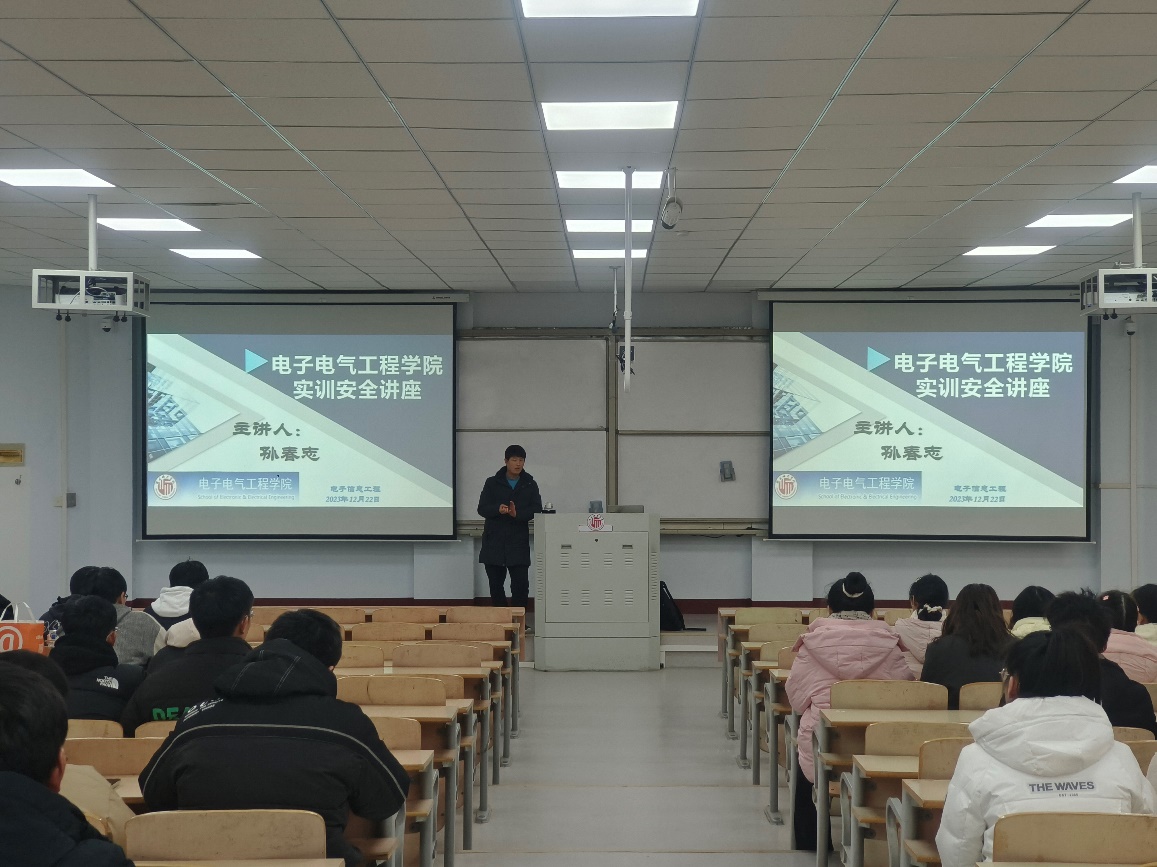 12月22日,电子系组织2021级电子信息工程和2022级电子信息工程专业学生在睢阳校区1号楼207阶梯教室召开了2023年秋季学期集中实习实训动员暨安全大会。会议由系主任孙春志主持,主要对实习内容、安全注意事项、操作规范及遵守实习纪律等方面进行了详细的部署和安排。