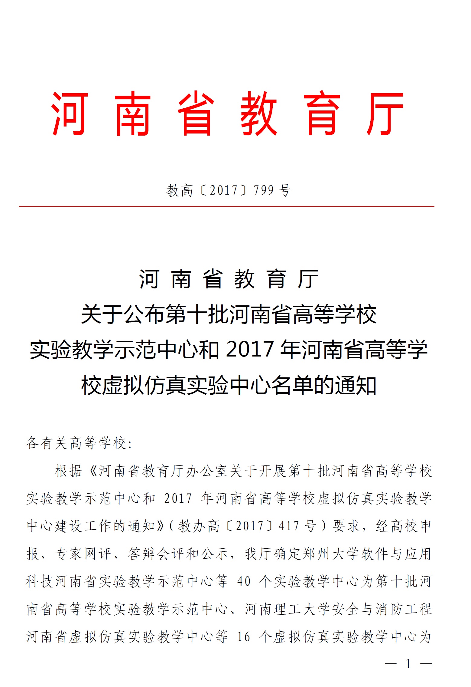 9月14日,《河南省教育厅关于公布第十批河南省高等学校实验教学示范中心和2017河南省高等学校虚拟仿真实验中心名单的通知》(教高[2017]799号)下发,我院电子设计与创新实践河南省实验教学示范中心成功获批。这是威廉williamhill获批的第3个河南省高等学校实验教学示范中心。