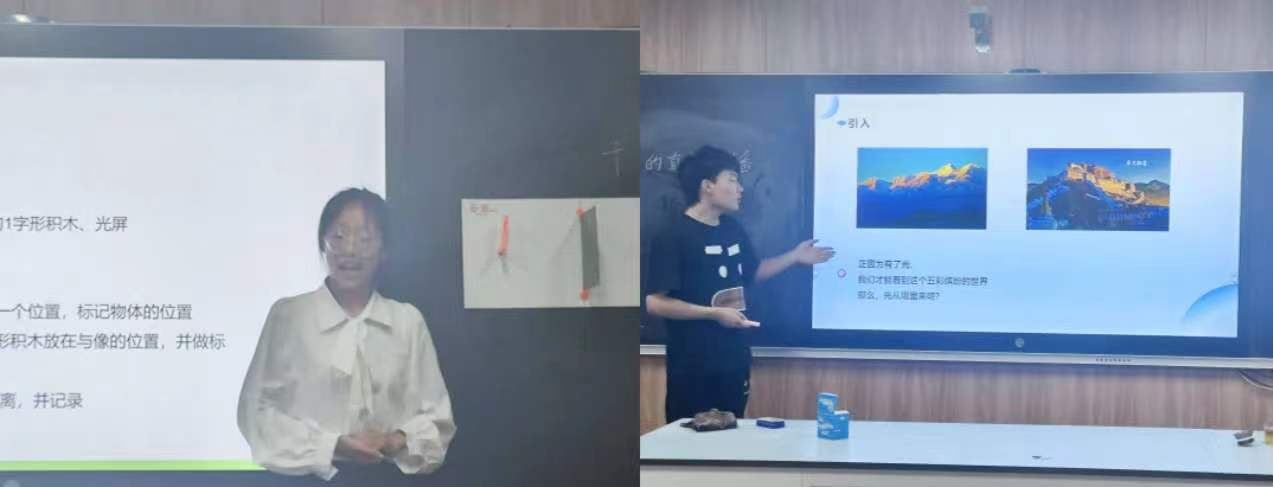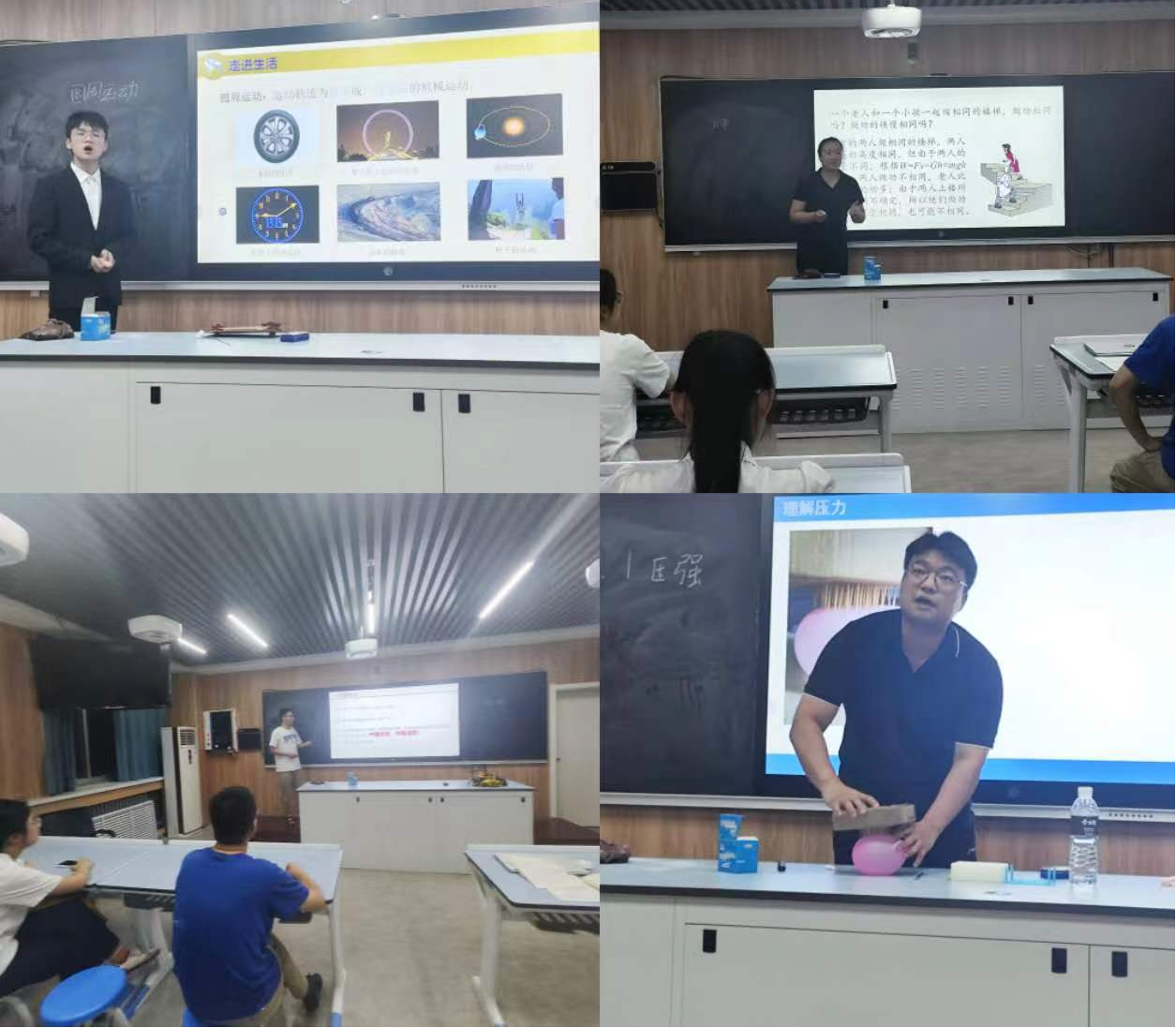 每个工作坊选出的优秀学生依次进行了微型课教学展示,牛杰、李金聪等10位同学分别展示了《圆周运动》、《机械能守恒定律》等课题的微型课教学过程。同学们都制作了精美的课件、并采用了实验、视频播放、动画等手段进行了辅助教学,精心组织和设计教学内容,使得教学内容丰富多彩,教学过程生动有趣。