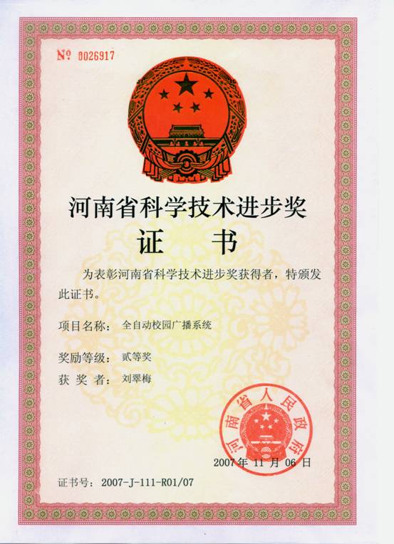 上一条:学院教师获得的学术荣誉称号 下一条:河南省科技进步奖三等奖证书