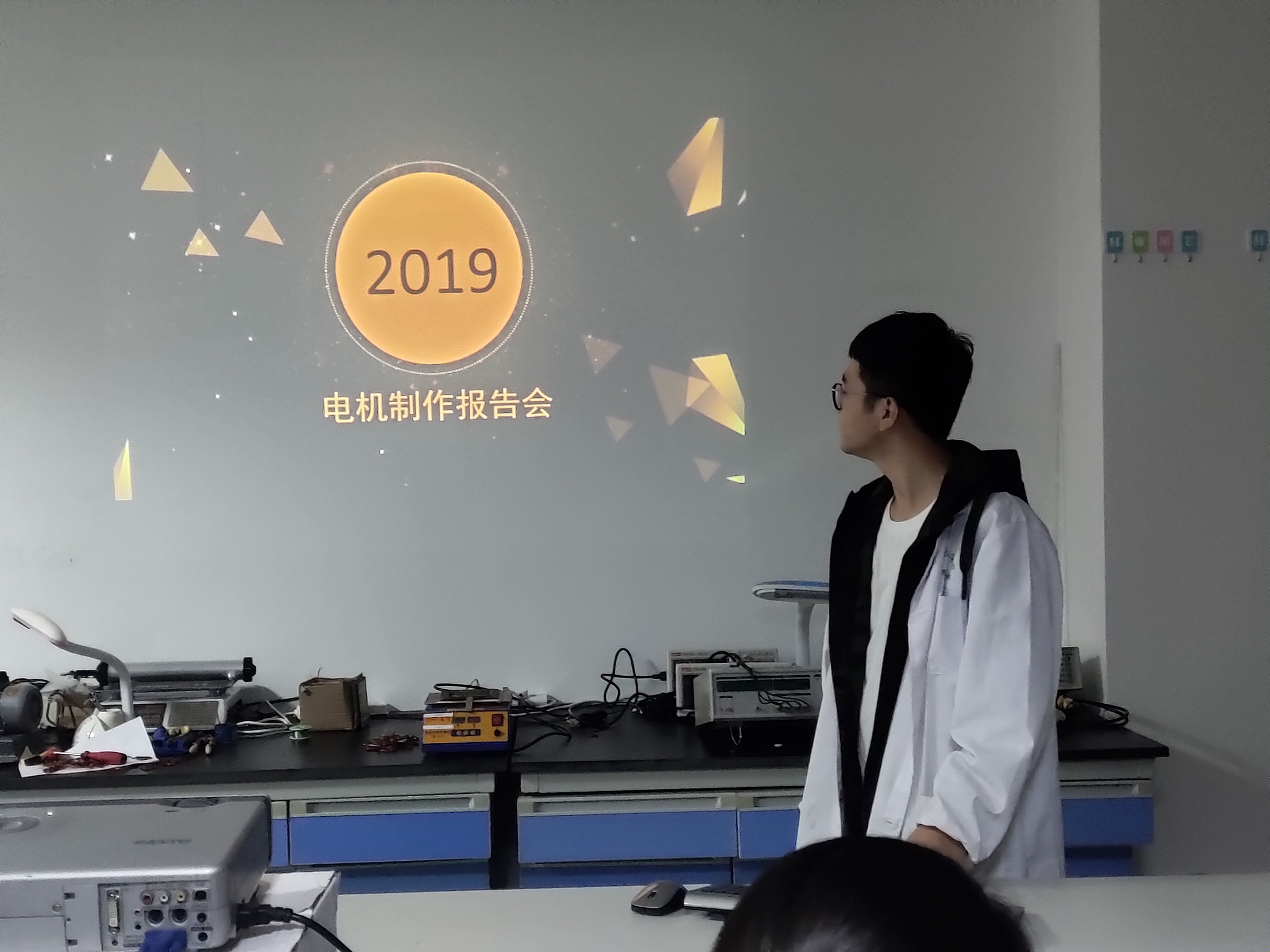 会议伊始,由王杰以“电机制作报告会”为主题,通过PPT讲述了特种电机原理和优势,展示了实验室内的特种电机制作仪器以及多种测量仪器等多种仪器,介绍了永磁无铁芯电机的简单制作步骤、特种电机相对传统电机的体积小、功率密度大等优势。姬晓月亦通过PPT以“当前电机的发展趋势”为主题,深入讲解了我国电机的发展史以及大功率电机趋于低压化和小型化、电机与控制器一体化、电机设计模块化等方面,讲述了近代中国电机的发展之迅速。孙伟超与学生互动交流,鼓励同学们要提出问题,并通过实验解决问题,做到理论与实践相结合,提高动手能力、创新能力。