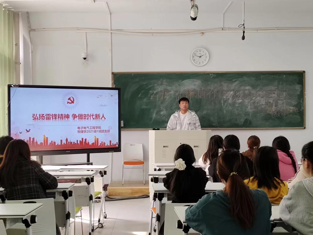活动伊始,各团支部书记播放电影《雷锋》,重温助人为乐故事,让青年团员对雷锋的生平事迹和人物形象有更加清晰的了解。同时,宣讲雷锋精神,传承红色基因,讨论在新时代如何践行雷锋精神,号召青年团员学习雷锋好榜样,争做雷锋接班人。最后,活动在歌曲《学习雷锋好榜样》中结束。