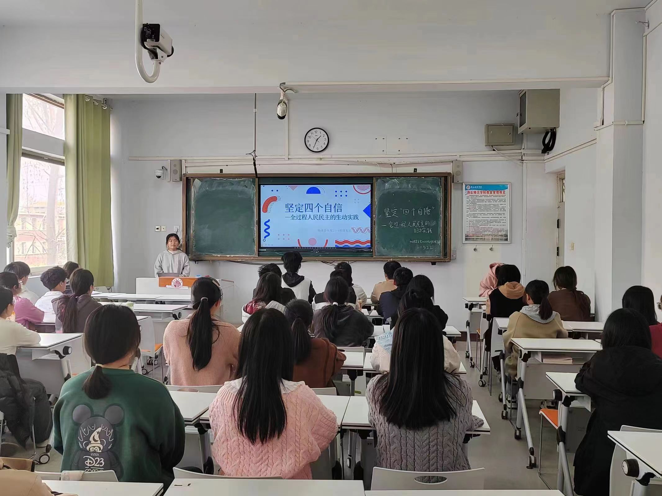本月团日活动共有三个主题。在主题“坚定‘四个自信’—全过程人民民主的社会实践”中,各团支部以全国两会精神为主要学习内容,强化思想政治引领,引导广大团员和青年群众感悟社会主义制度的优势,坚定青年“听党话 跟党走”的理想信念。在“彰显青春风采--寒假归来话收获”主题团日活动中,同学们分享了参加寒假社会实践活动的经验,并表示要努力学习文化知识,提高综合素质,以实际行动践行青春使命。在“弘扬雷锋精神--让青春在奉献中绽放”主题团日活动中,各团支部通过讲雷锋故事、观雷锋影片、听雷锋歌曲等形式,带领同学们深刻感悟雷锋精神,引导他们向“身边的活雷锋”学习,将雷锋精神内化于心、外化于行,以实际行动践行社会主义核心价值观,为实现中国梦贡献青春力量。