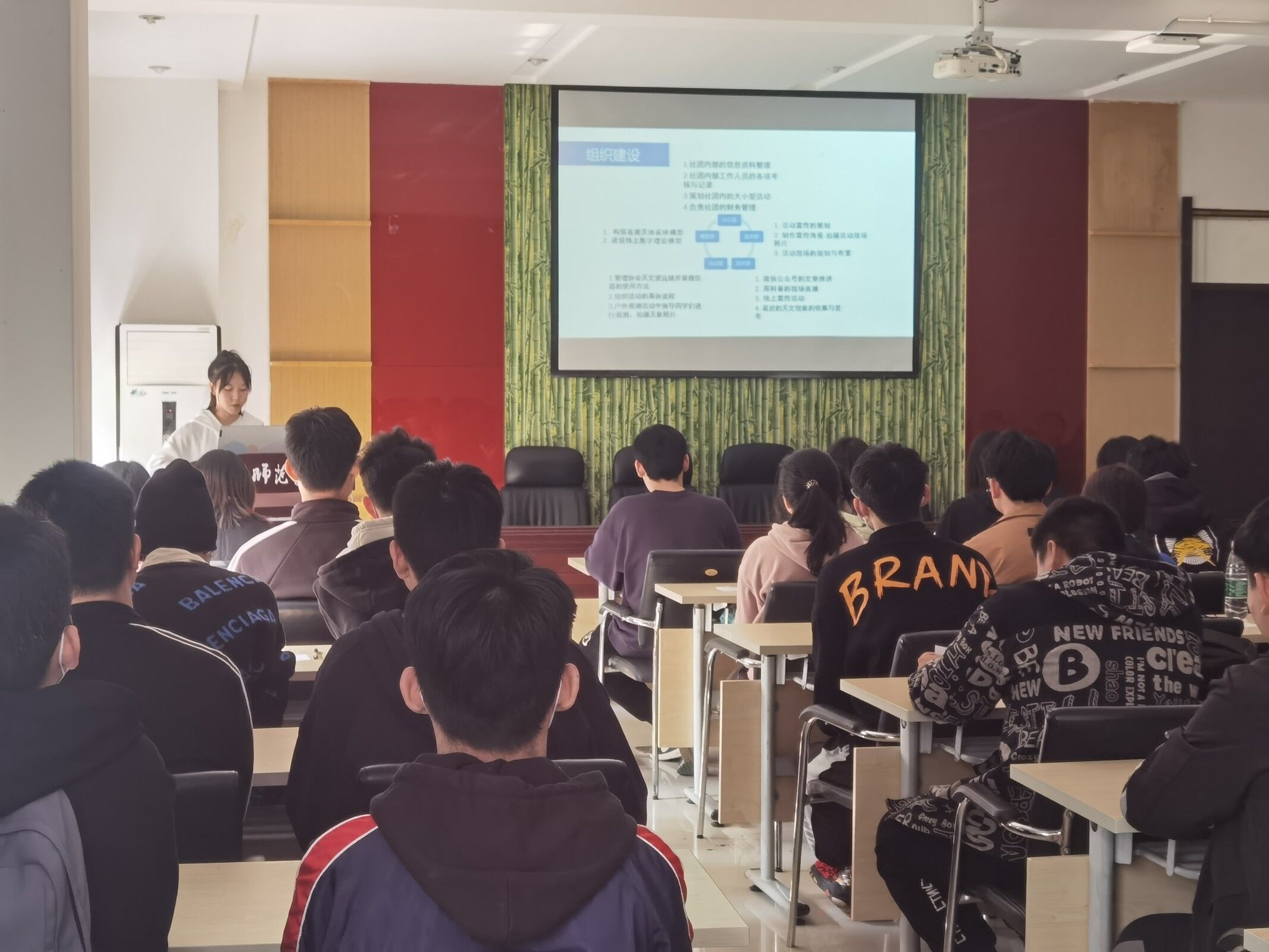 本次活动由我院团总支社团部承办,天文爱好者协会、无线电社以及家电义务维修社参加活动,他们依次从思想政治、组织建设、活动开展以及成员培养四个方面进行了社团展示汇报。2021级各班新生代表进行现场投票,我院团总支社团部经过了紧张的后期计票,本次“文明社团”评选结果为家电义务维修社。