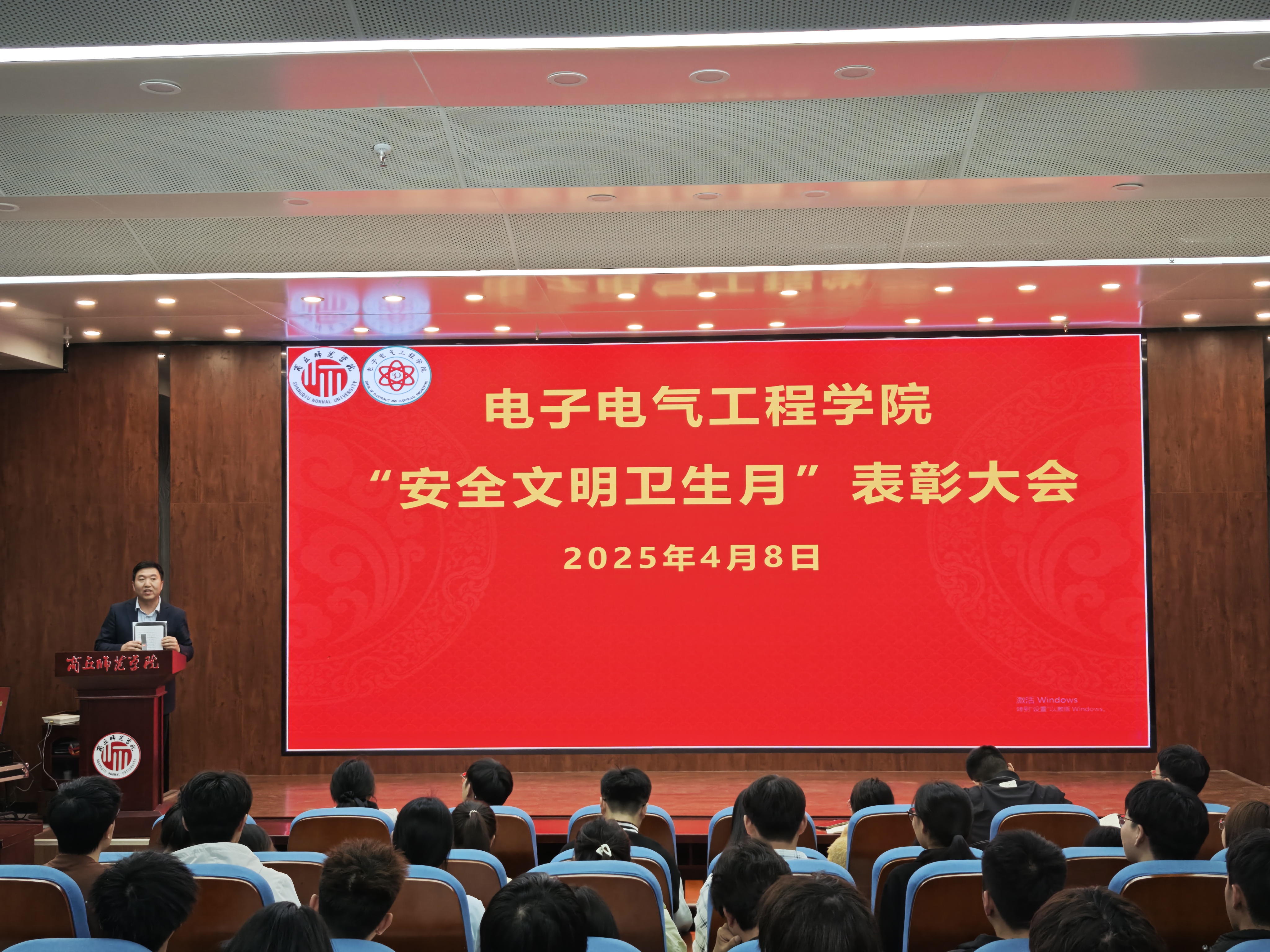 4月8日,我院于工科实训中心报告厅召开“安全文明卫生月”表彰大会。院党委副书记蒋玉涛、学工办主任孙莉娟和各年级辅导员出席会议。