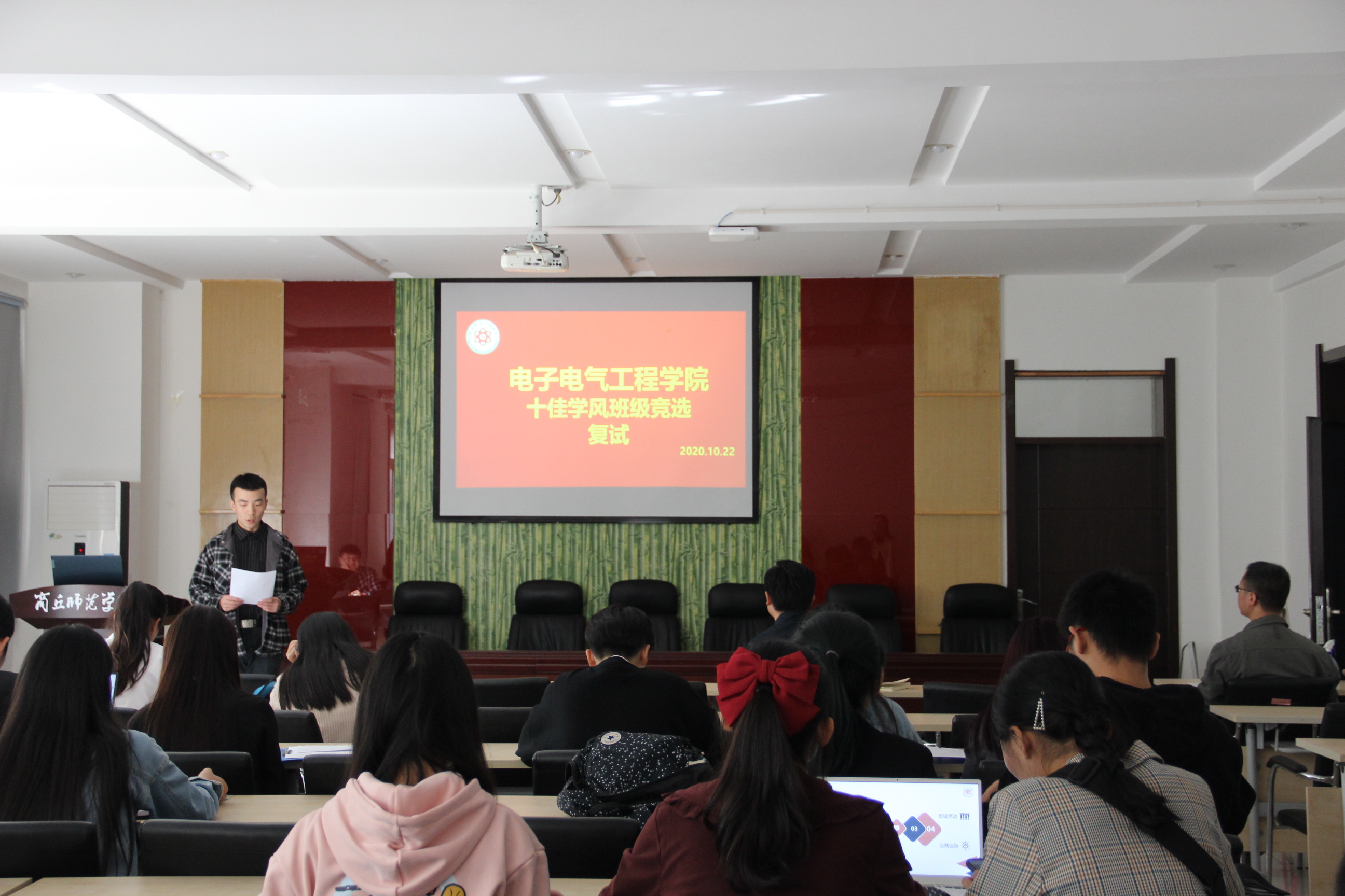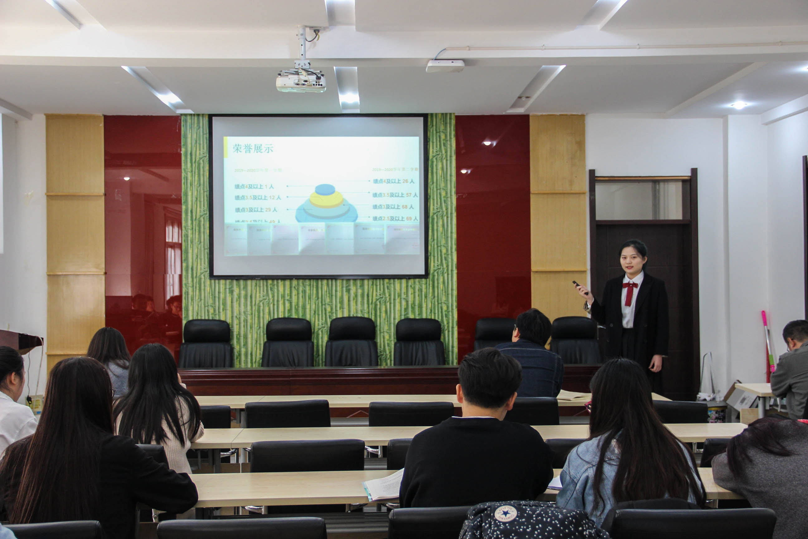 本次评选活动分为初赛和复赛两轮,以PPT展示与演讲汇报相结合的形式进行。各参赛班级从班级组织建设、学风建设、创新创业、成绩展示等方面向评委老师和现场同学进行了精彩的展示和汇报。现场气氛热烈,各班级精彩的汇报不时引起阵阵掌声。