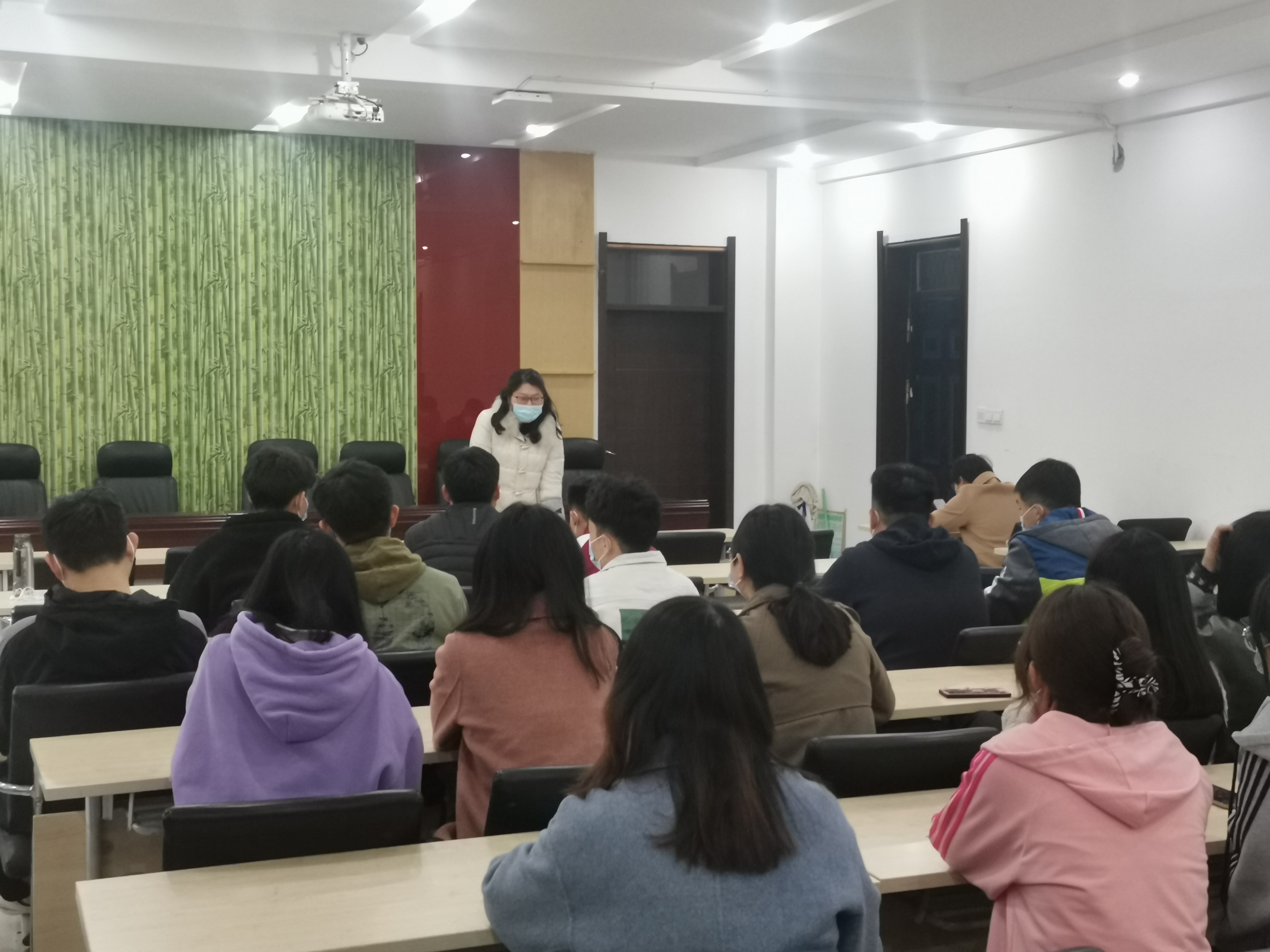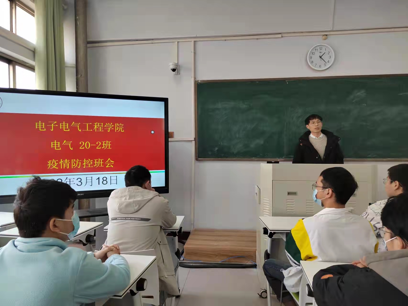 会上,各年级辅导员和各班班主任传达了学院疫情防控会议的会议精神,详细讲解了学校、学院的疫情防控政策,要求各位同学要遵守省校的疫情防控规定,保持高度的风险危机意识,坚决杜绝任何麻痹思想、侥幸心理;要严格请销假制度、做到“非必要不外出”;要在校园内坚持佩戴口罩、每天测温打卡,如有异常情况发生及时上报,坚持“日报告、零报告”制度。