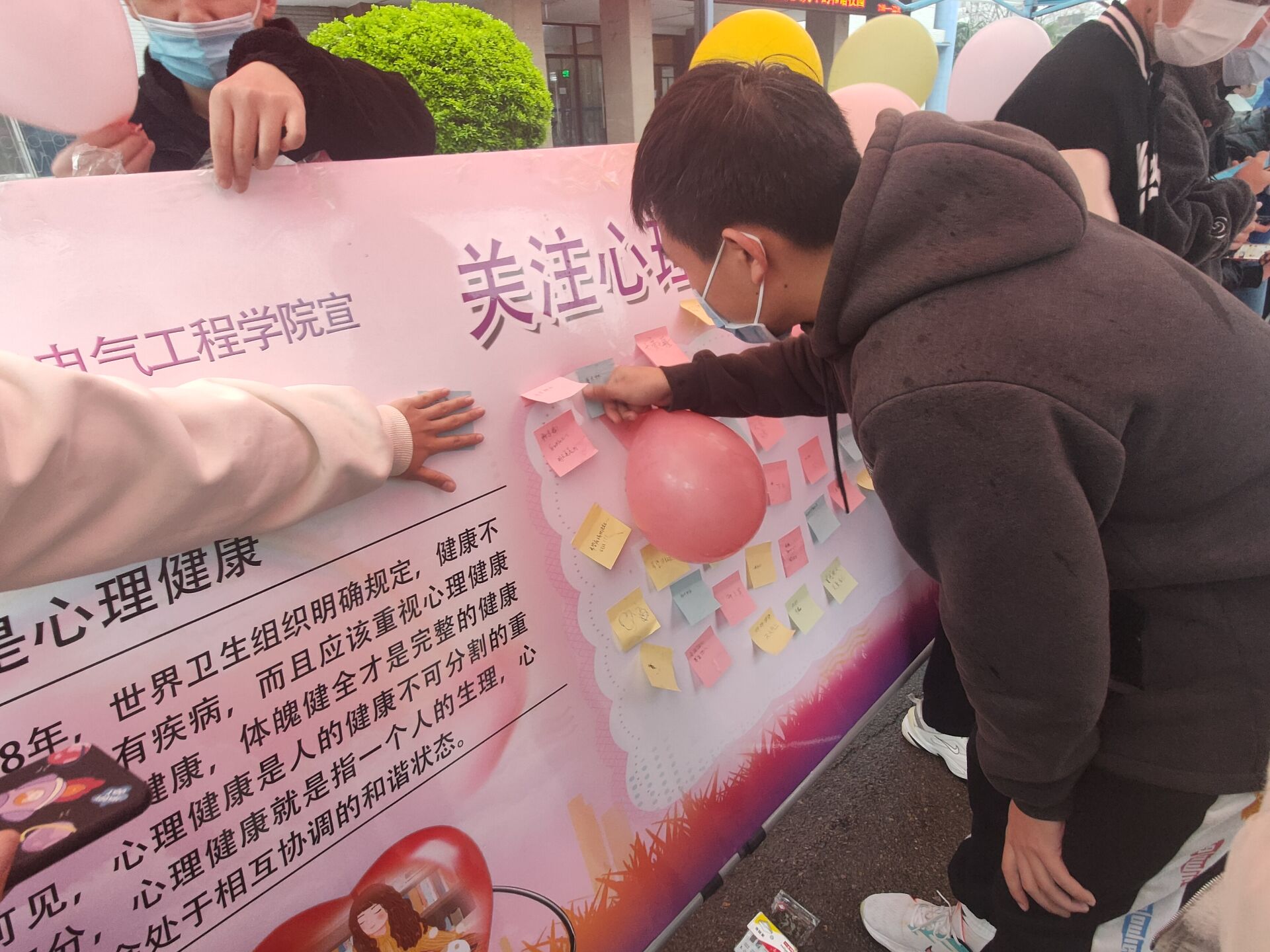 此次活动以三种形式展开,分别为心灵寄语、征集疫情温馨故事、告白父母。同学们可以通过表白展板表露心声,倡导大学生关爱自己,感谢自己;还可以与大家分享在疫情期间发生的令人难以忘怀的动人故事,引导同学们树立阳光积极心态,感恩生命;还可以告白父母,感谢父母多年来的养育,感恩父母。活动开始后,同学们争先恐后地来到活动地点,将自己的心声和祝福用便签的形式贴在活动展板上,留下自己的印记。