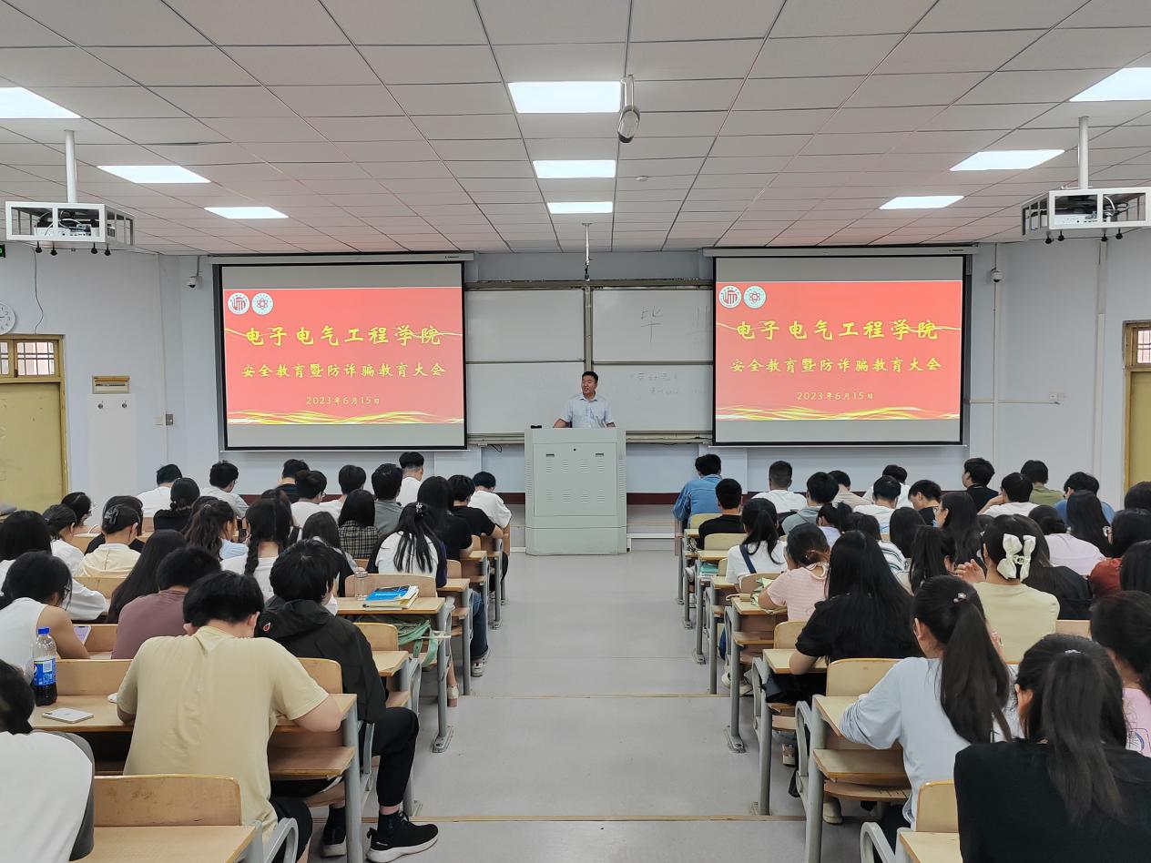 6月15日下午,我院于睢阳校区1号教学楼207、208教室召开安全教育暨防诈骗教育大会大会。2021级、2022级共400余学生参加,大会由院党委副书记蒋玉涛主讲。