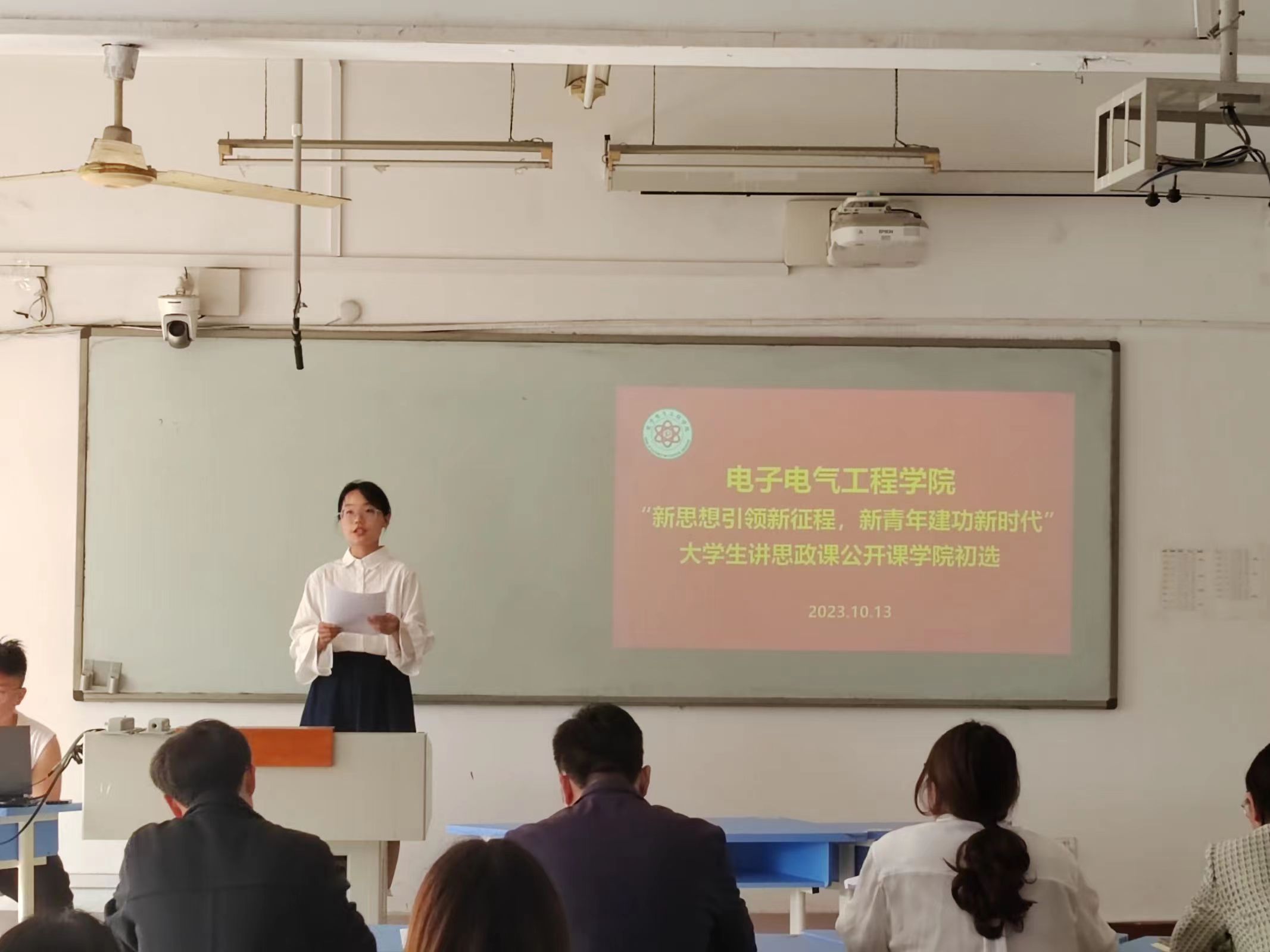 10月13日,我院于睢阳校区综合实验楼举办以“新思想引领新征程,新青年建功新时代”为主题的大学生讲思政公开课展示活动院级初选赛。出席本次活动的有院党委副书记蒋玉涛、学工办主任孙莉娟及各年级辅导员。
