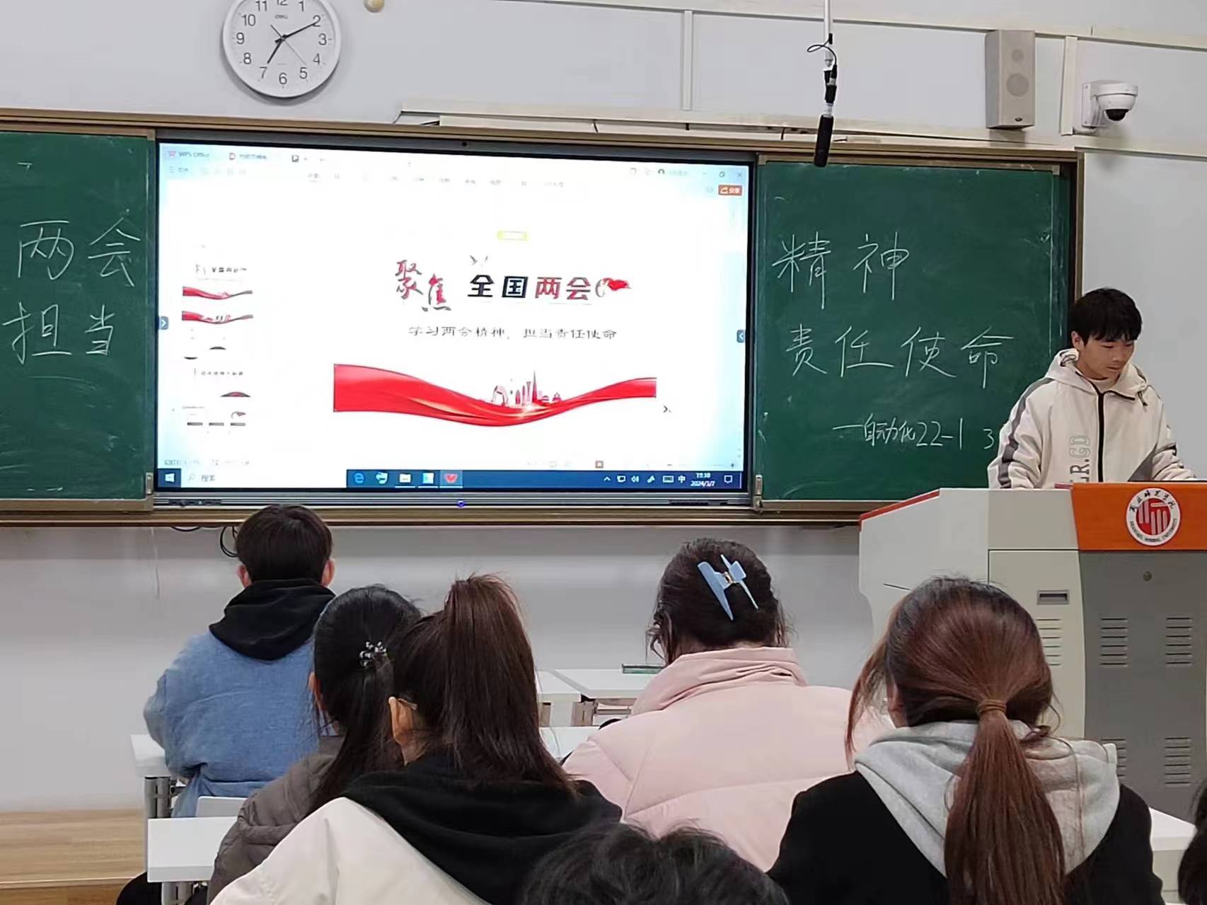 3月7日至12日,威廉williamhill于睢阳校区组织开展深入“学习两会精神,担当责任使命”主题班会。班会由各班班长主持,全体2022级学生参加。