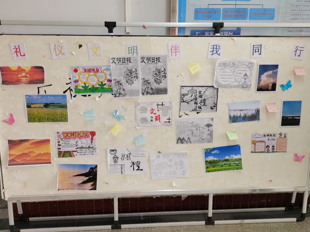 首先,各班通过召开“文明礼仪 伴我同行”主题班会,深入开展行为规范养成教育,引导学生遵守校纪校规,牢固树立健康第一责任人意识,养成科学健康的生活方式,培养良好的社会公共意识。随后,各班同学举行了制作绘画作品、手抄报等活动。