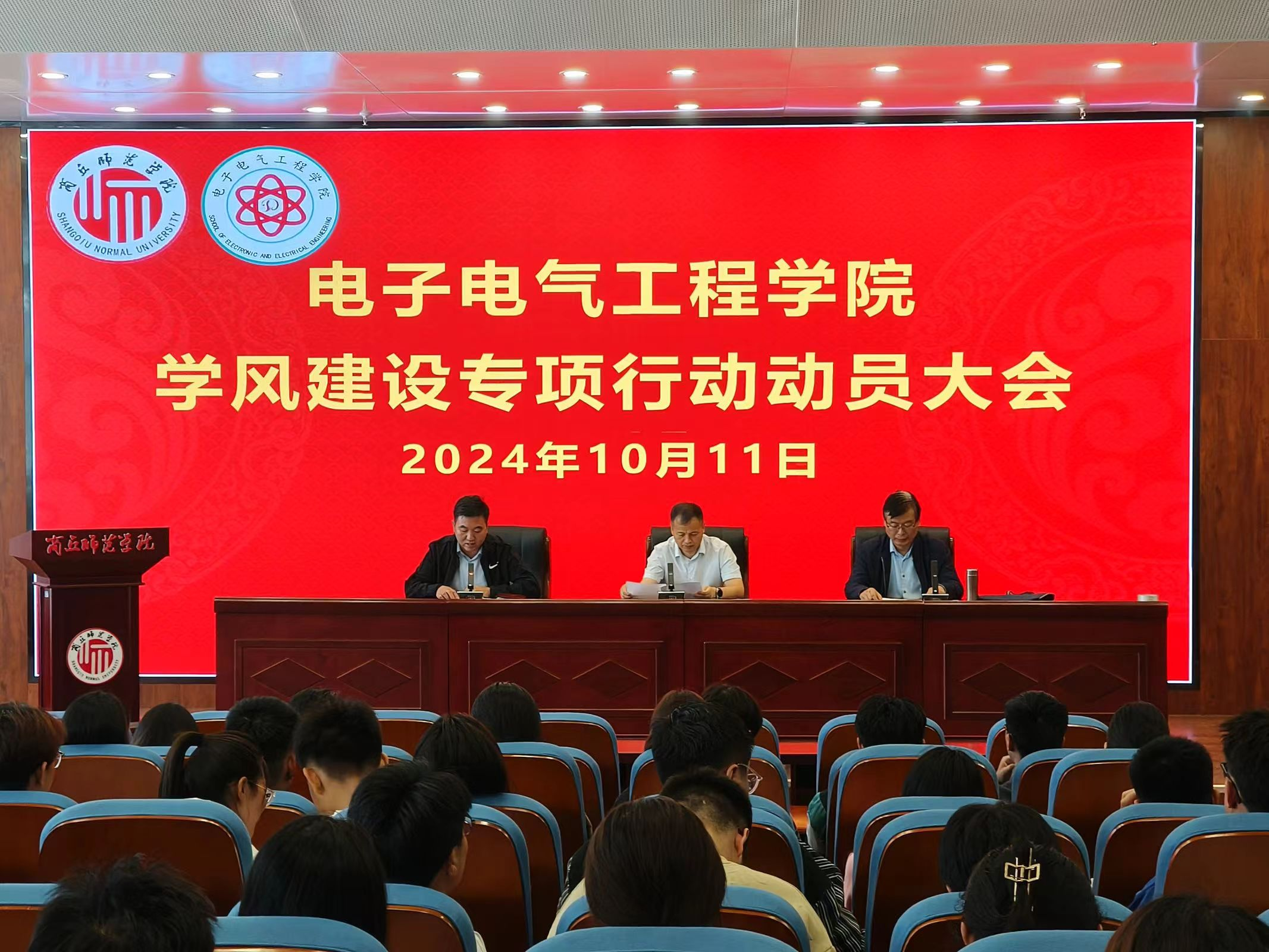 10月11日,我院于睢阳校区工科实训楼报告厅召开学风建设专项行动动员会。学院领导班子,学工办、团委负责人及各年级辅导员出席,各年级班委参会。动员会由学院副书记蒋玉涛主持。