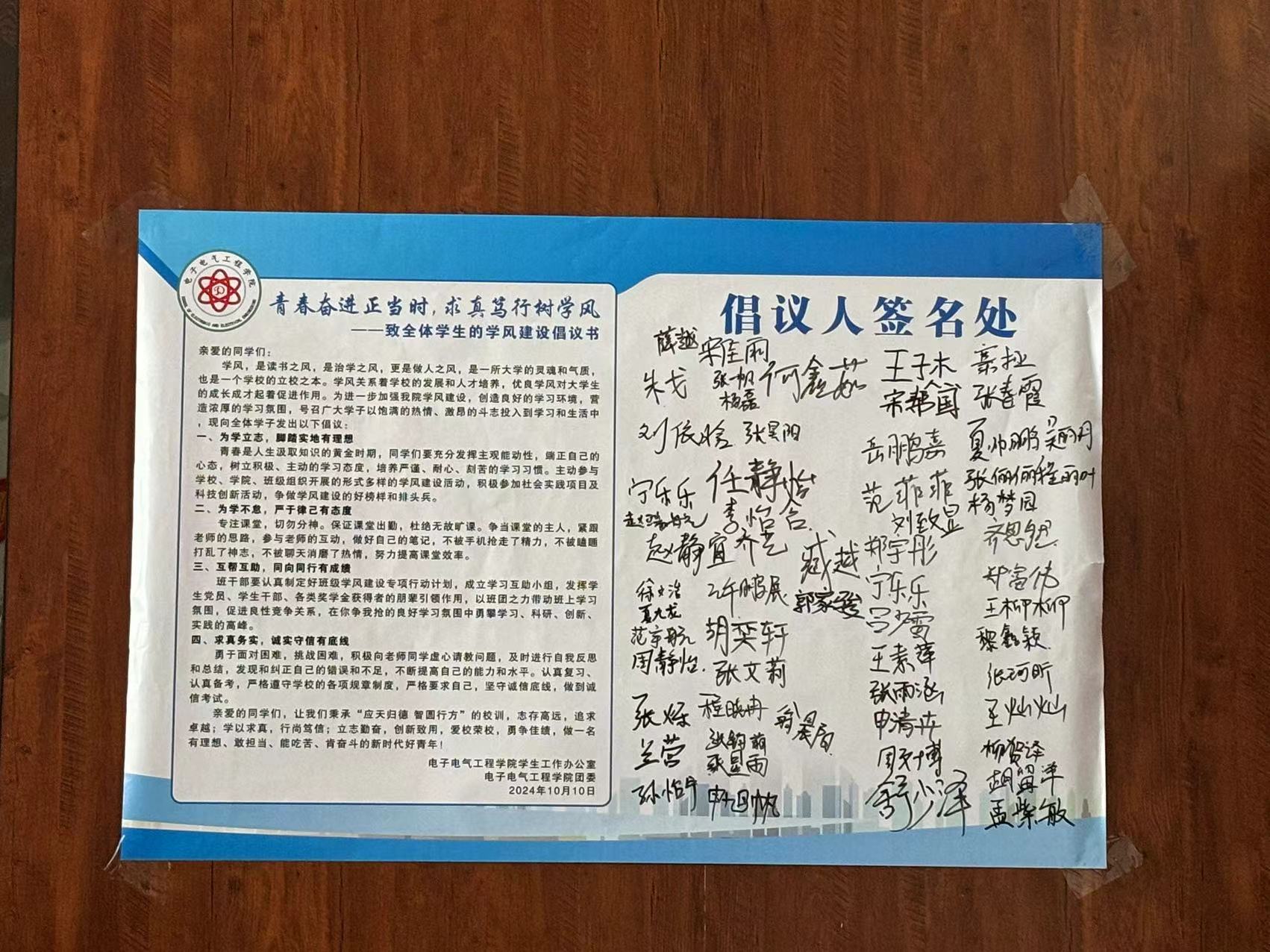 会上,副院长曾庆国宣读了《威廉williamhill关于加强学风建设的实施方案》。接着,电气23-1班夏九龙同学带领全体参会人员进行宣誓。最后,院长赵纲领作动员讲话并对学风建设提出要求,一是树立远大理想,为学立志,脚踏实地;二是端正学习态度,勤学不怠,严于律己;三是发挥榜样引领,互帮互助,同向同行;四是守牢底线,求真务实,诚实守信。他希望全体同学牢记“应天归德 智圆行方”校训,在青春的赛道上跑出威廉williamhill学子的青春风采。