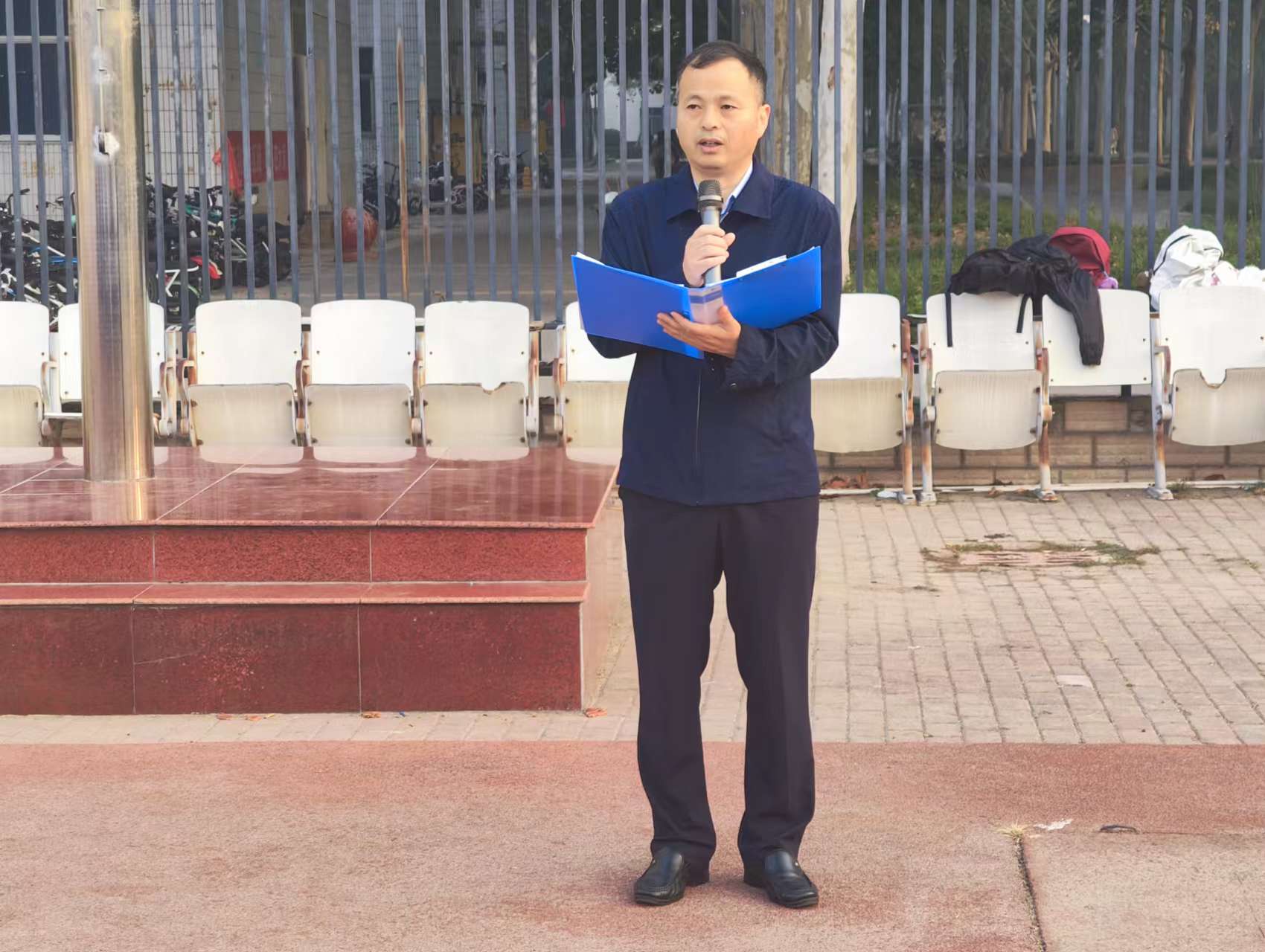 6点50分,升旗仪式正式开始。国旗护卫队步伐整齐划一,坚定而庄严地护送五星红旗走向旗杆。随着雄壮的国歌响起,鲜艳的国旗缓缓升起,全体师生在操场上肃立,注视着这神圣的一刻。接着,学院朗诵队带来诗朗诵《我的祖国》,表达了新时代青年对祖国的热爱与自豪以及为中国式现代化努力奋斗的决心。最后,院长赵纲领为全体师生带来题为《涵养优良学风,争做有为青年》的微党课,他从“立志勤学、砥砺前行、勇于创新、奋斗以成”四个方面进行讲述,引导同学们坚定理想信念,厚植家国情怀,练就过硬本领,全面成长成才,敢于自我挑战,奋斗出彩青春。