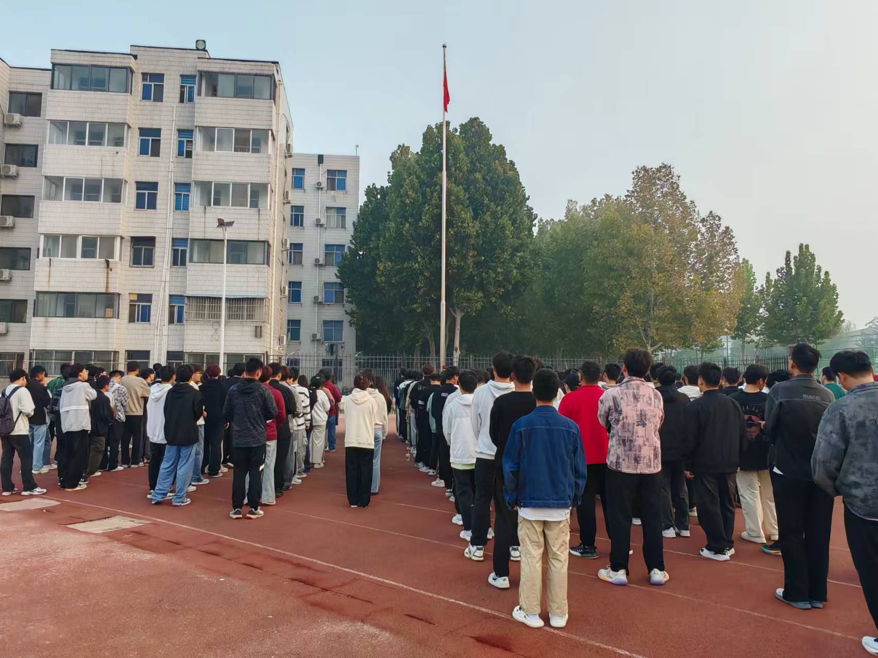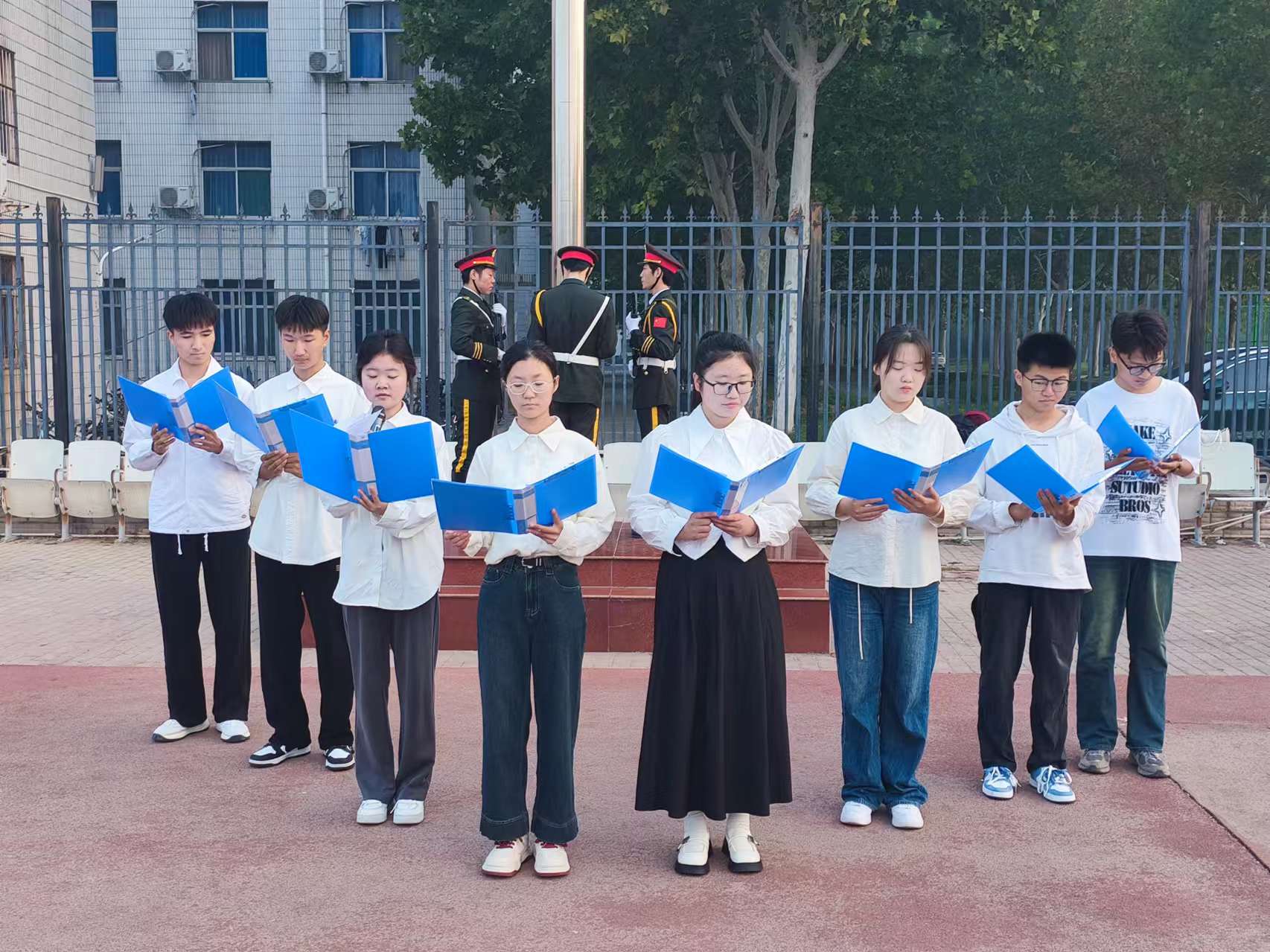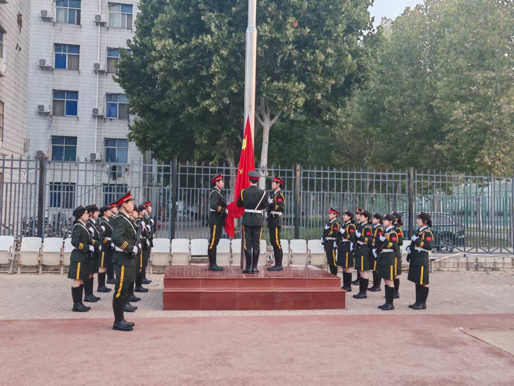 10月14日,我院于睢阳校区举行“七十五载绘锦绣 筑梦时代谱华章”主题升旗仪式,院领导班子成员、全体辅导员及2024级全体学生参加。