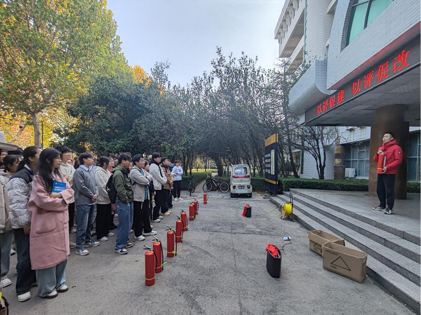 为提高学院师生风险防范意识及自救互救能力,筑牢校园消防安全防线,11 月 21日 -22日,我院特邀学校保卫处消防科辛相如、王凯两位老师在物理楼前开展了消防知识培训暨应急演练活动,本次培训的主要内容是灭火器的使用。