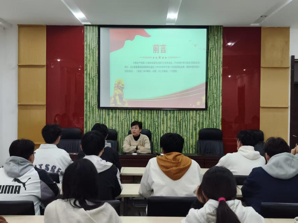 开班仪式后,李琳为入党积极分子讲授党课。她围绕党的二十届三中全会的重大意义、核心内容和实践要求进行了系统解读,强调教育、科技和人才在中国式现代化建设中的重要地位以及高校学生在此进程中的使命与担当。同时,她也着重指出大学生要加强网络素养,增强网络安全意识,提高网络风险防范能力,做到依法上网、文明上网、安全上网、自律上网。