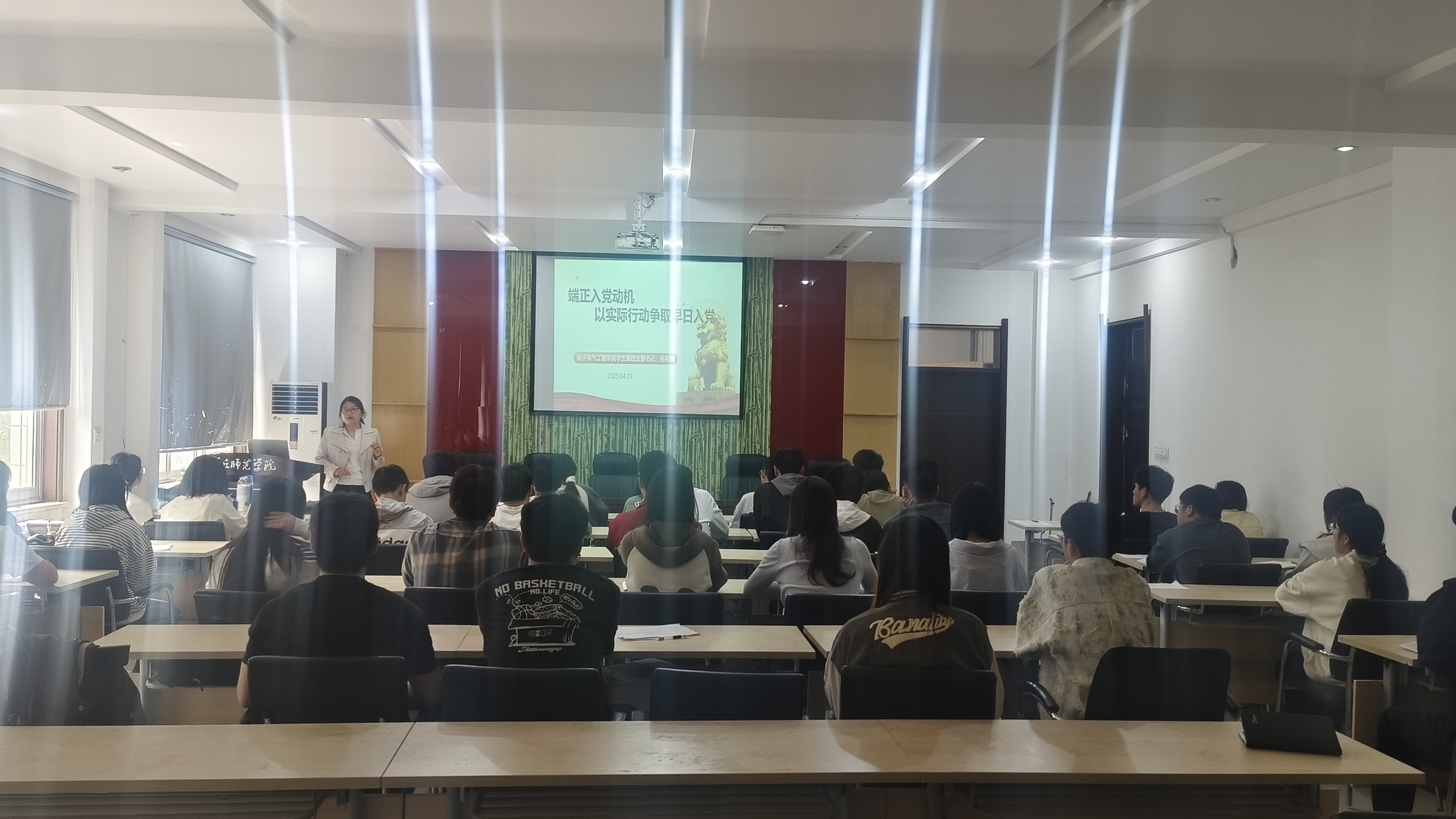4月9日,我院学生第四党支部书记孙莉娟为入党积极分子上党课,题目为《端正入党动机,以实际行动争取早日入党》。