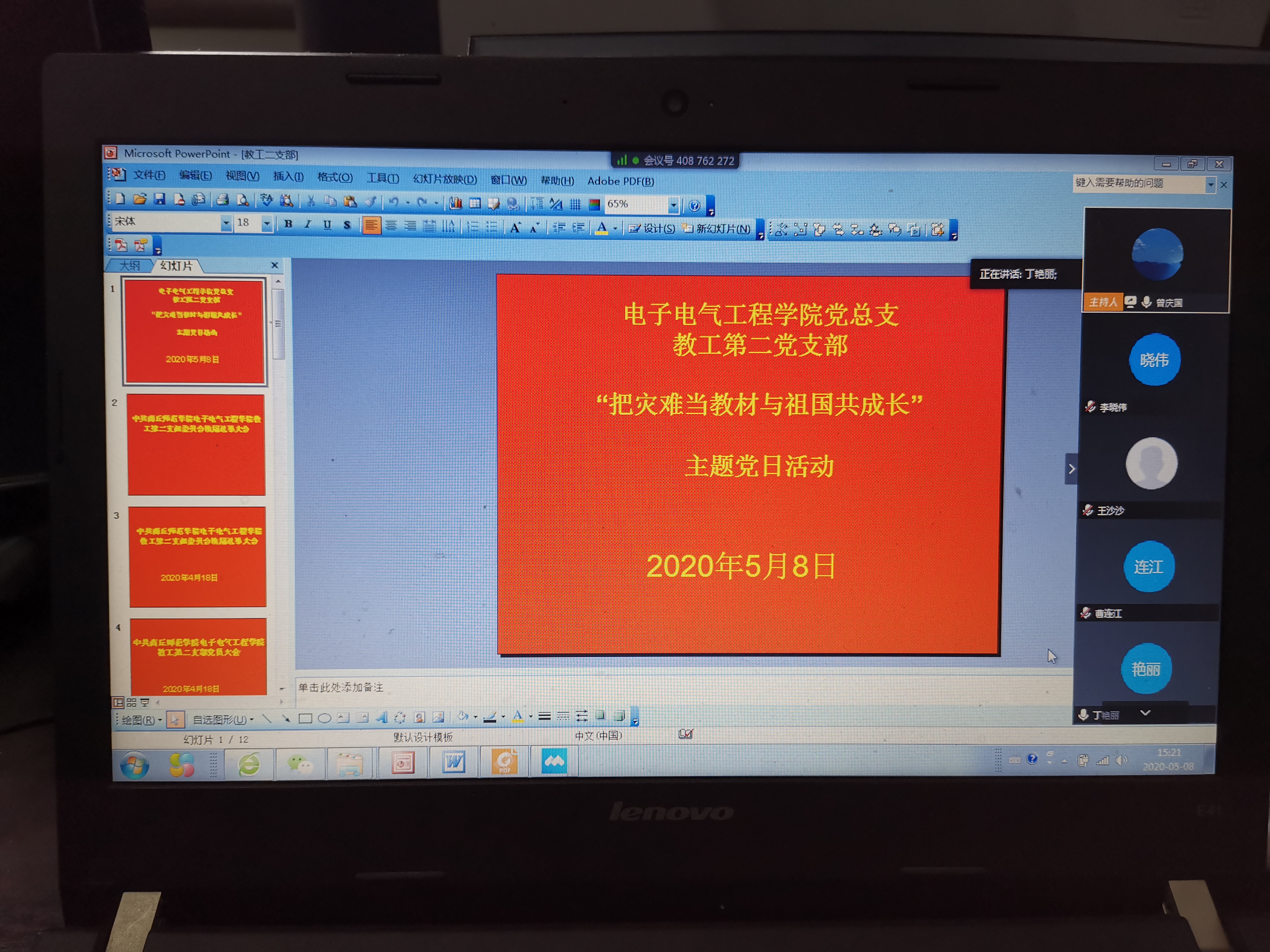 威廉williamhill四个教工党支部和四个学生党支部结合自身实际,分别通过微信、QQ网络会议、学习强国平台视频会议等开展了“把灾难当教材 与祖国共成长”线上主题党日活动。活动中,各支部组织党员观看了河南省教育厅党组书记、厅长郑邦山在河南省新冠肺炎疫情防控专题第九场新闻发布会上的讲话视频,学习了焦作市武陟县中水寨村马明杰等10名大学生优秀群体事迹等,各位党员就疫情防控工作中的所见、所闻、所学、所想进行了交流座谈。
