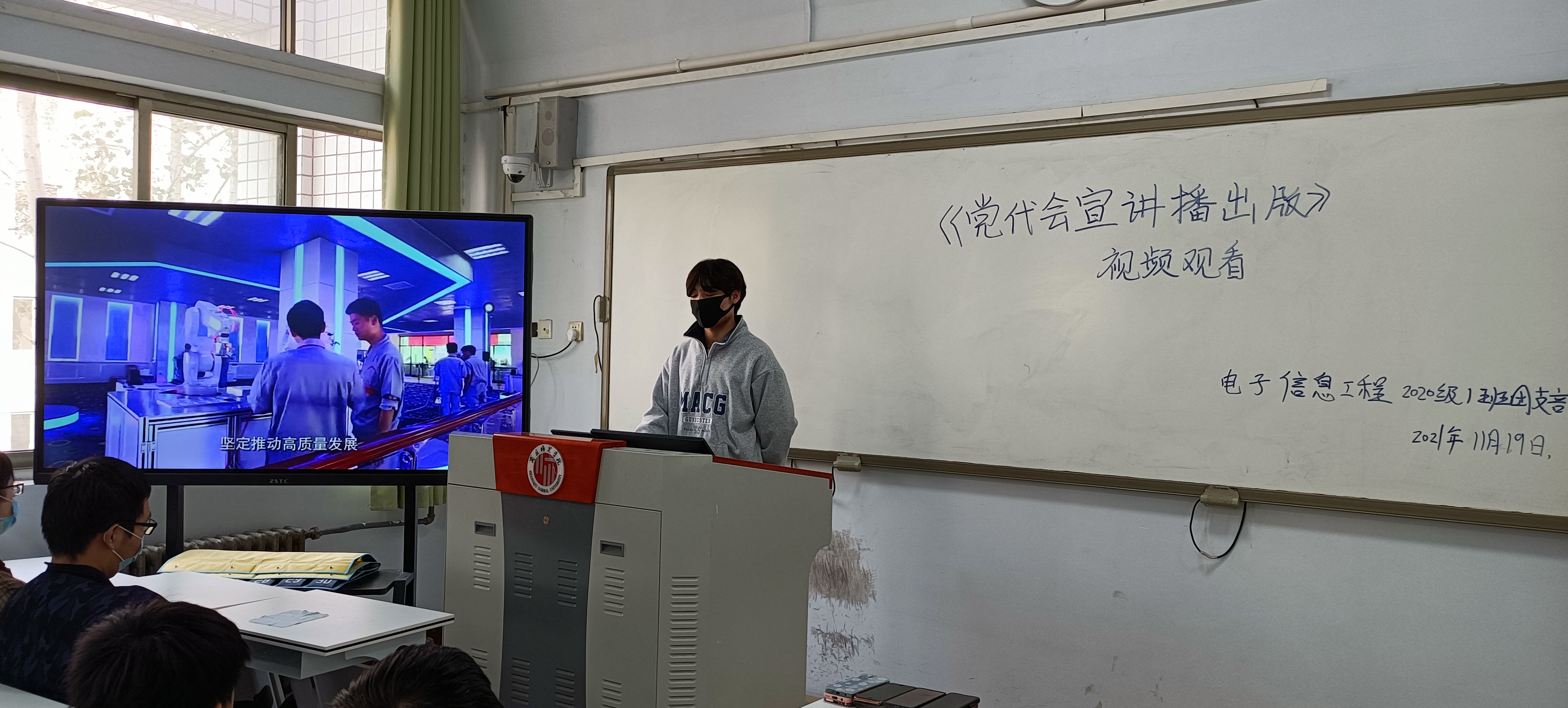 11月19日,威廉williamhill组织全院师生在睢阳校区观看河南省第十一次党代会精神宣讲视频。