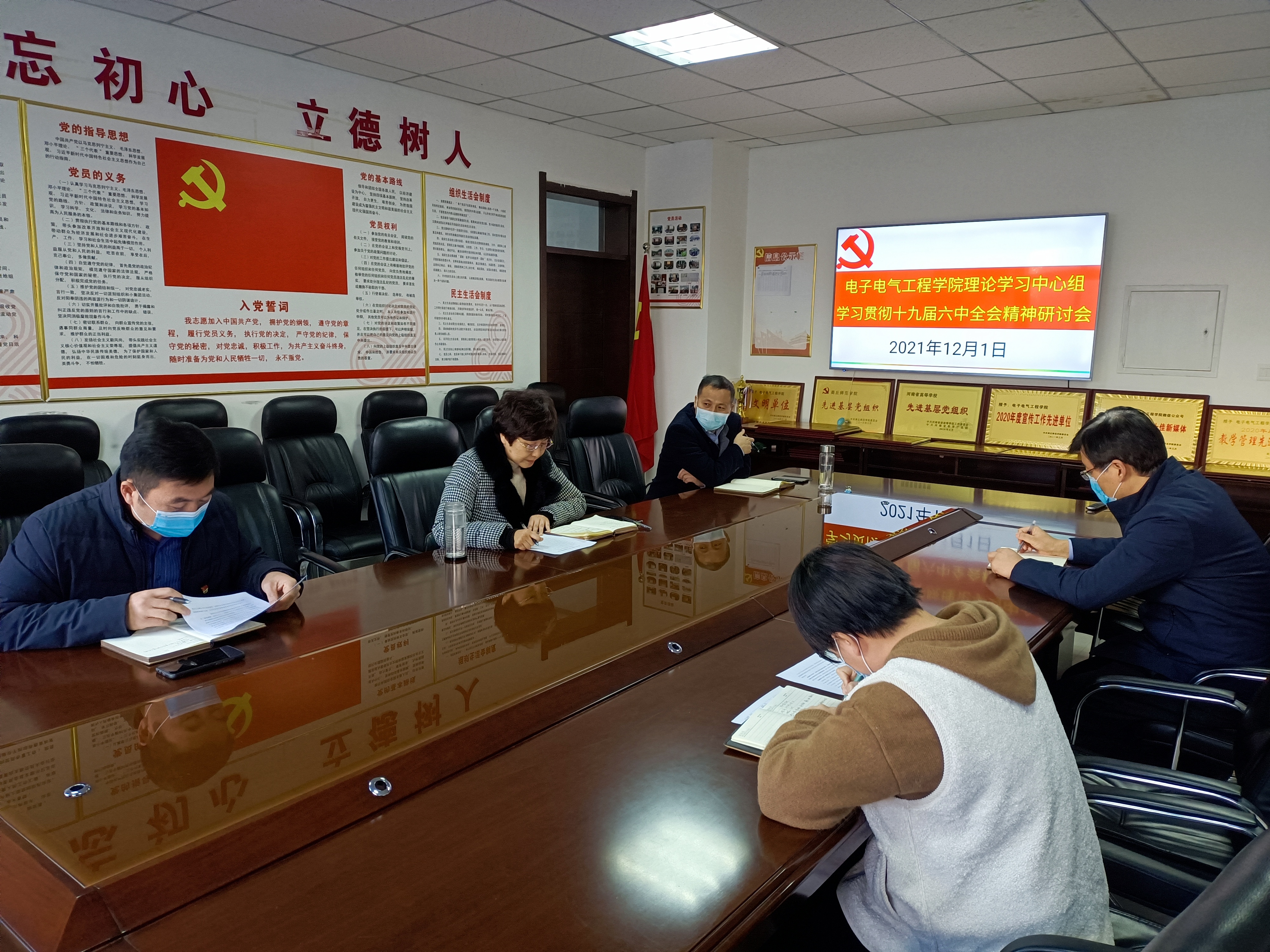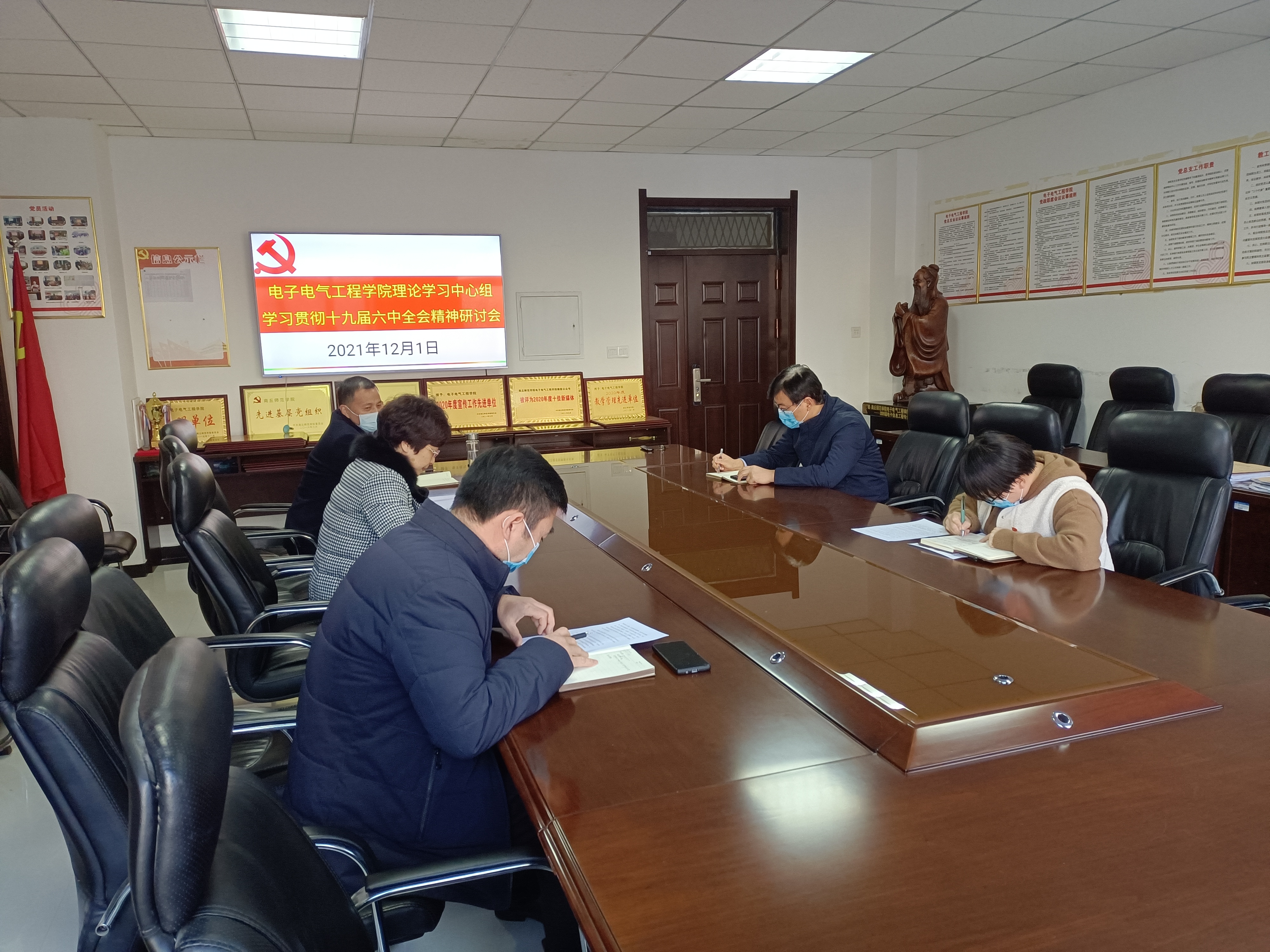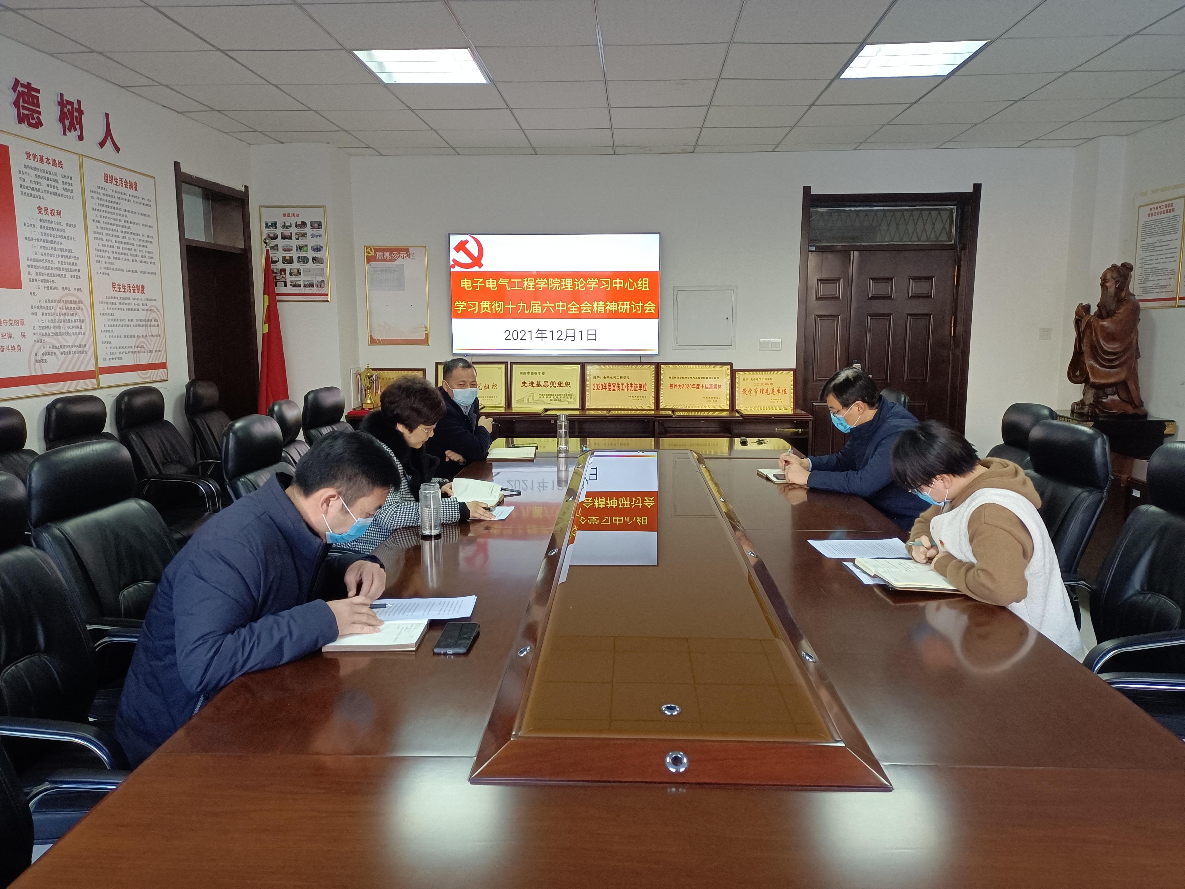 会前,党委书记李琳、院长赵纲领、副书记蒋玉涛、副院长曾庆国、统战委员兼宣传委员林可君等五位同志通过多种形式自主学习了《中国共产党第十九届中央委员会第六次全体会议公报》,重点学习了十九届六中全会审议通过的《中共中央关于党的百年奋斗重大成就和历史经验的决议》,并结合工作实际,撰写了发言提纲。