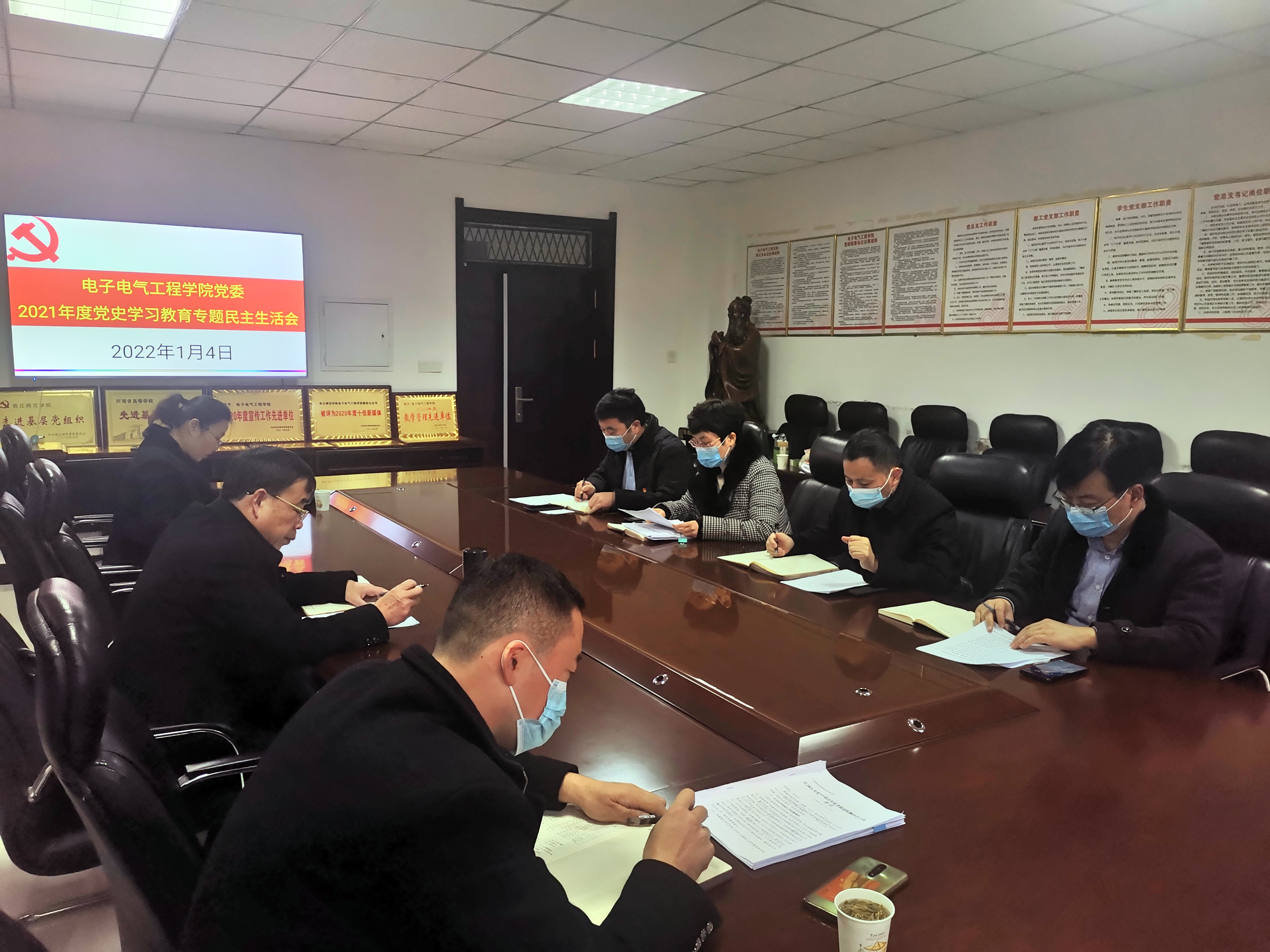 根据校党委《中共william威廉中文委员会关于开好党史学习教育专题民主生活会的通知》(商师党发〔2021〕164 号)精神,1月4日,威廉williamhill在睢阳校区召开2021年度党史学习教育专题民主生活会。校第五指导组组长副校长徐茂田,组员纪委副书记路利,督查督办科副科长吴海峰莅临指导。学院领导班子成员参加会议,会议由党委书记李琳主持。