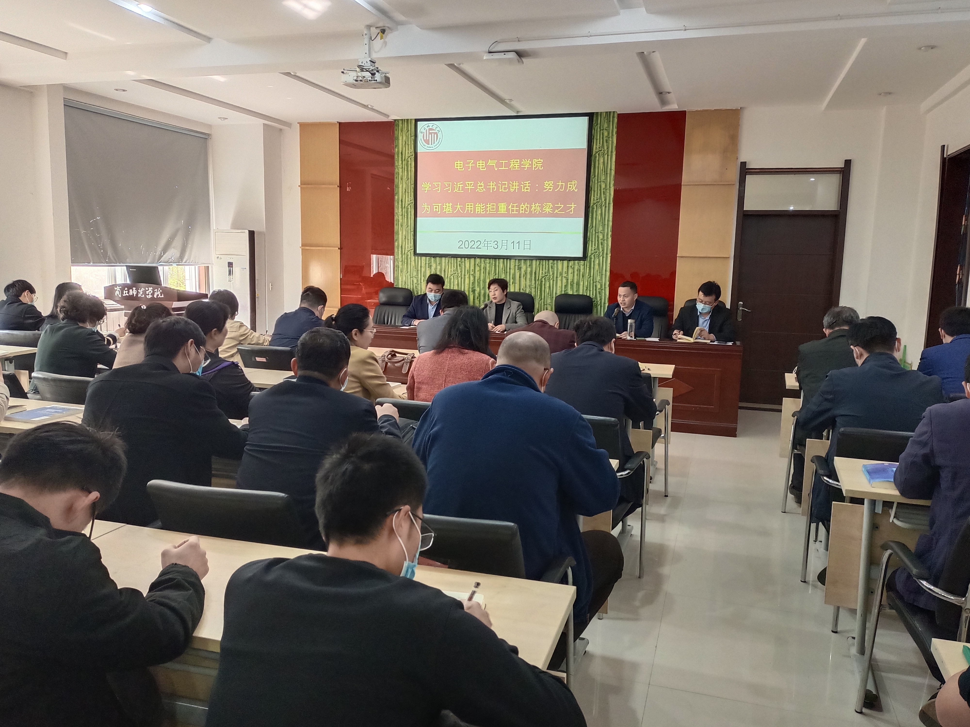 3月11日,威廉williamhill全体教职工在睢阳校区召开政治理论学习会议。院党委书记李琳领学,全体教职工参加。