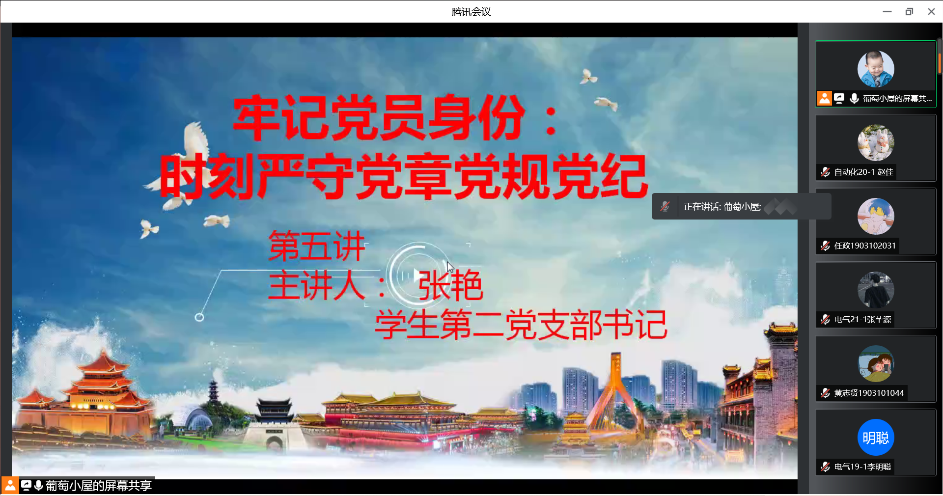 4月1日,威廉williamhill学生第二党支部书记张艳通过腾讯会议的方式为入党积极分子讲授党课。