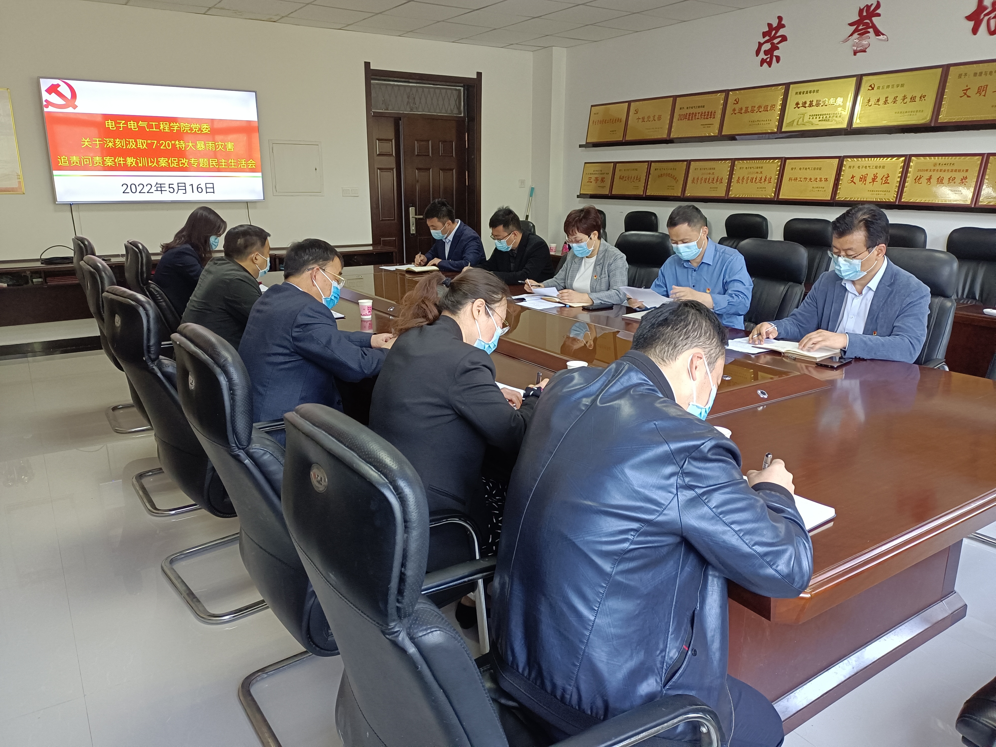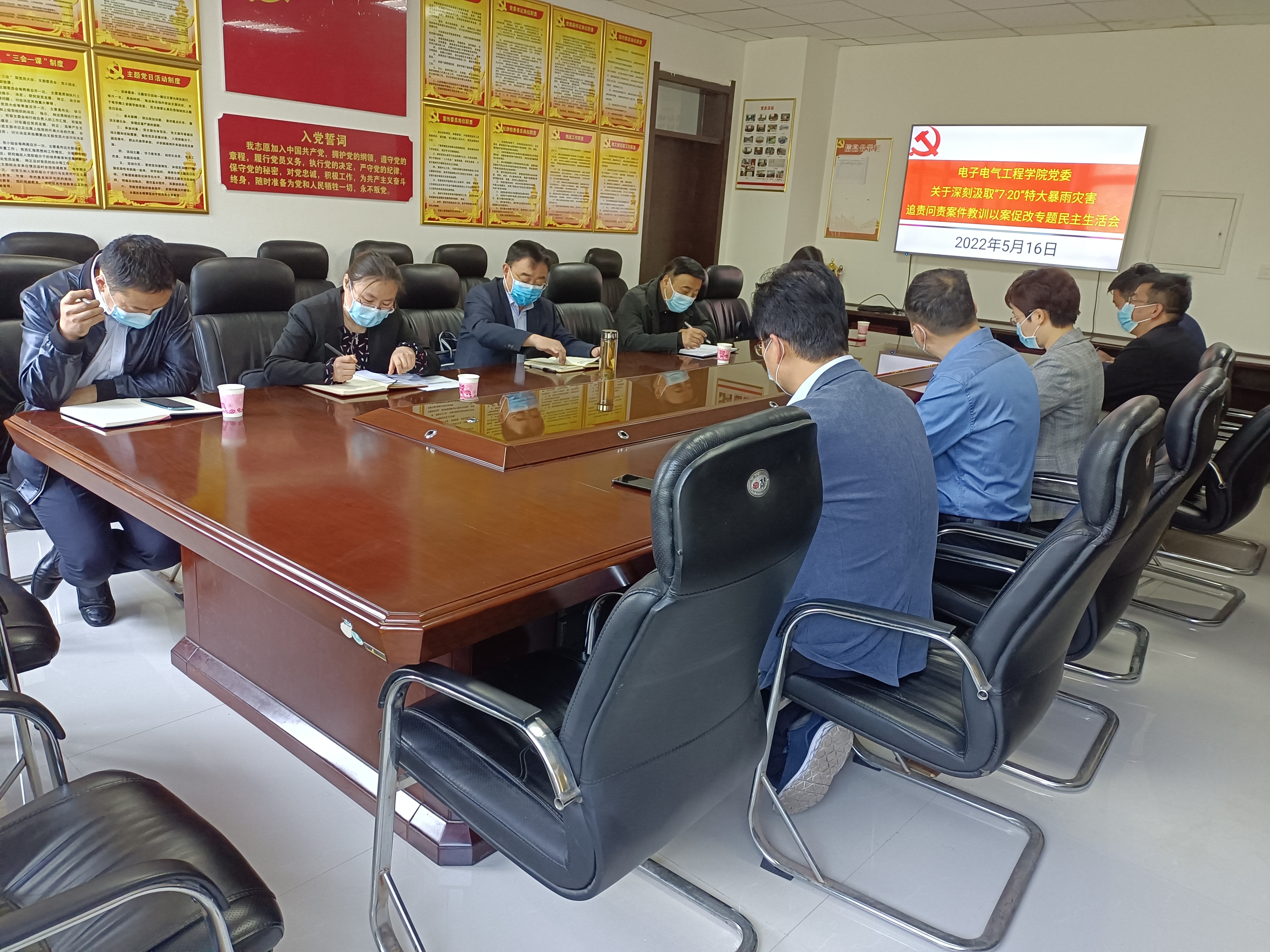 5月16日,我院于睢阳校区召开“7.20”特大暴雨灾害问题追责案件以案促改专题民主生活会。民主生活会督导组第五组组长副校长徐茂田,组员纪委副书记路利,督查督办科副科长吴海峰和校纪委委员、纪检监察员第八监督指导组纪委副书记陈东、网络思政中心主任、组织部副部长郭宁莅临指导。院党政领导班子成员参会,特种功能材料设计与改性河南省工程研究中心主任李朋列席会议。