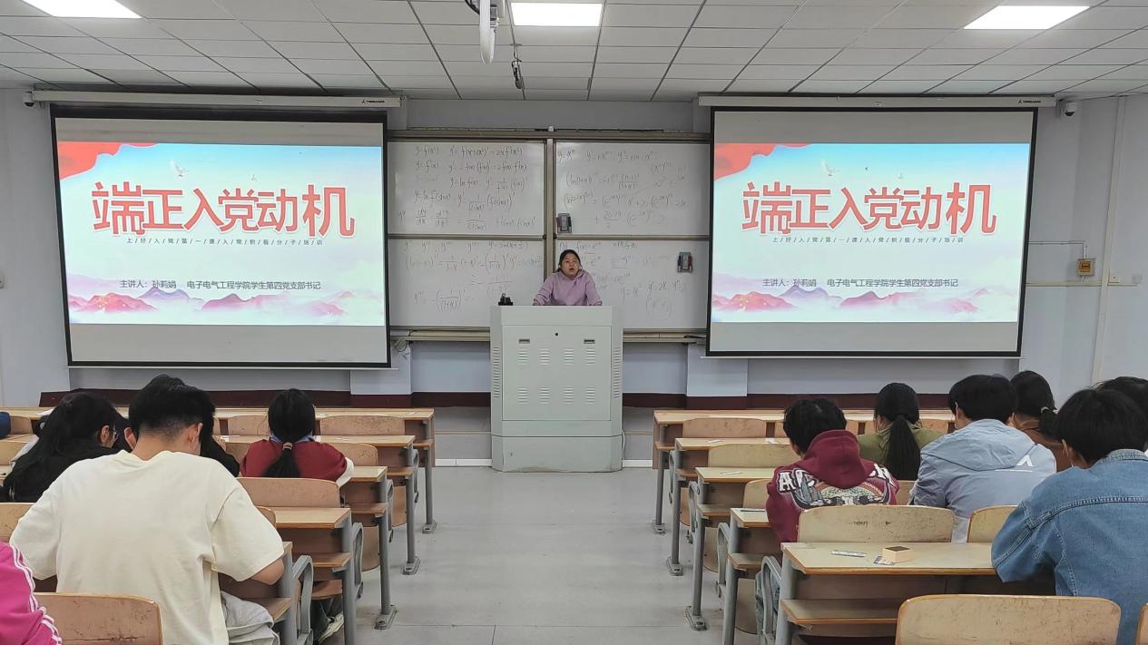 11月3日,我院学生第四党支部书记孙莉娟为全院入党积极分子上党课,此次党课主题是“端正入党动机”。