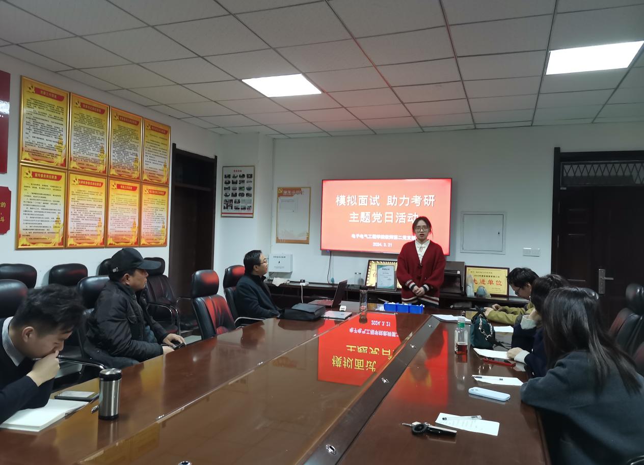 为帮助考研同学备战面试,3月21日,教师第二党支部开展了“模拟面试助力考研”主题党日活动,支部党员教师积极担任面试评委,为考研学子成功上岸保驾护航。