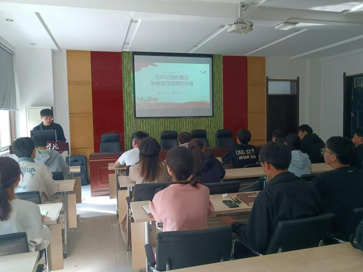 10月30日,学生第三党支部书记王兴在物理楼208为入党积极分子上党课,此次党课的主题是《筑牢纪律的基石争做恪守规章的先锋》。