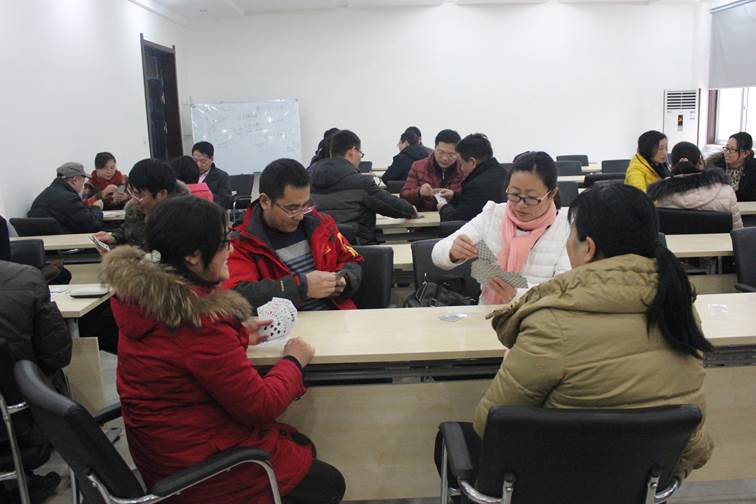 为庆祝“元旦”、 “春节”的到来,1月8日下午,物理与电气信息学院在文化路校区物理实验楼二楼报告厅组织了一场别开生面的双升和掼蛋趣味比赛活动,物理与电气信息学院全体教职工参加了趣味活动。比赛时,教职工们热情很高,踊跃地参与比赛,各参赛队员认真比赛,比赛中选手们全神贯注、齐心协力、团结一致,气氛热烈,笑声不断。比赛中各路好手使出浑身解数,赢得了阵阵掌声。此次活动丰富了我院教职工的业余生活,让教职工们度过了一个愉快的周末。(物理与电气信息学院)