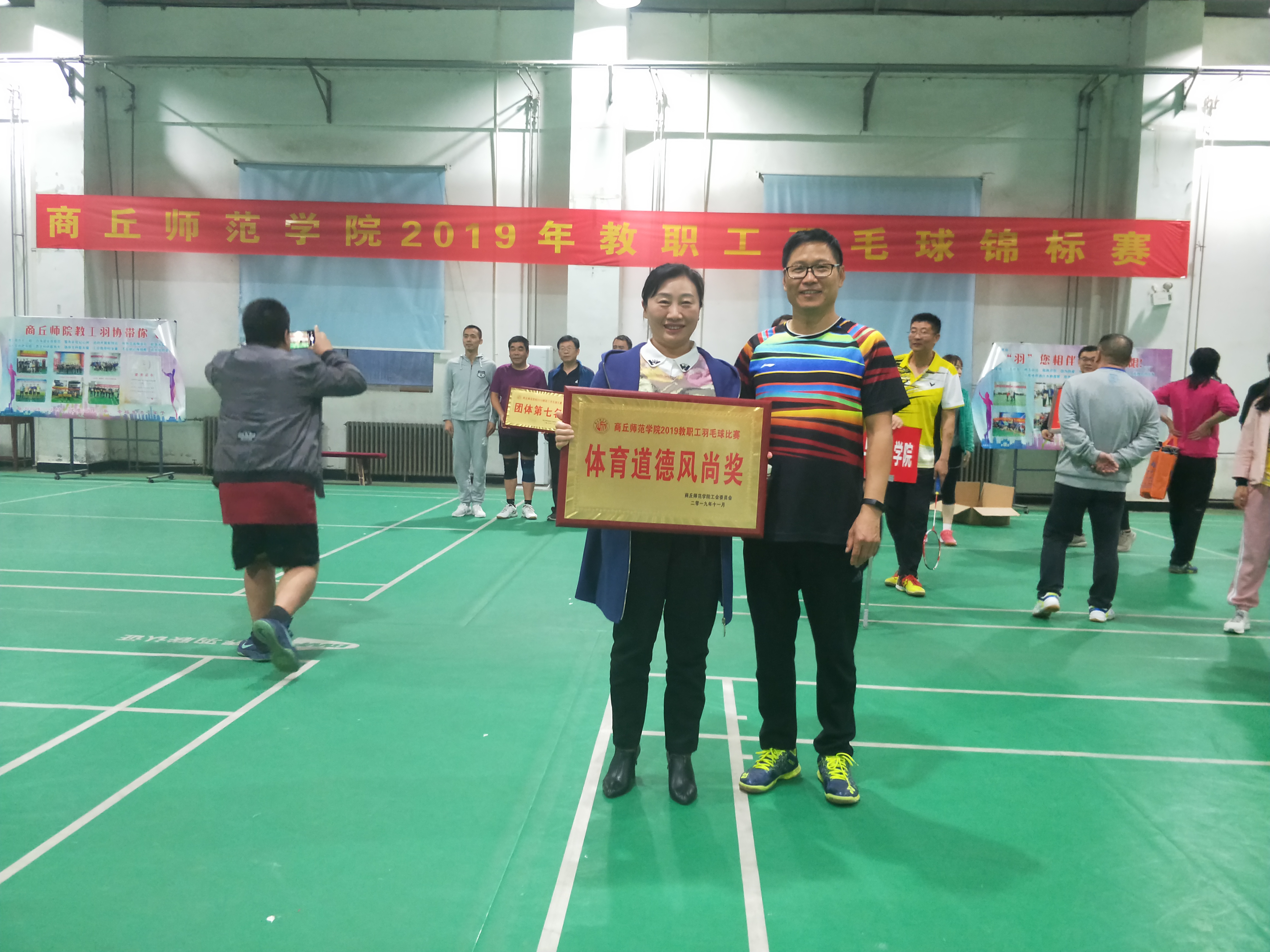 2019年11月1日至2日,william威廉中文2019年教职工羽毛球赛在梁园校区羽毛球馆举行,威廉williamhill代表队荣获了体育道德风尚奖。