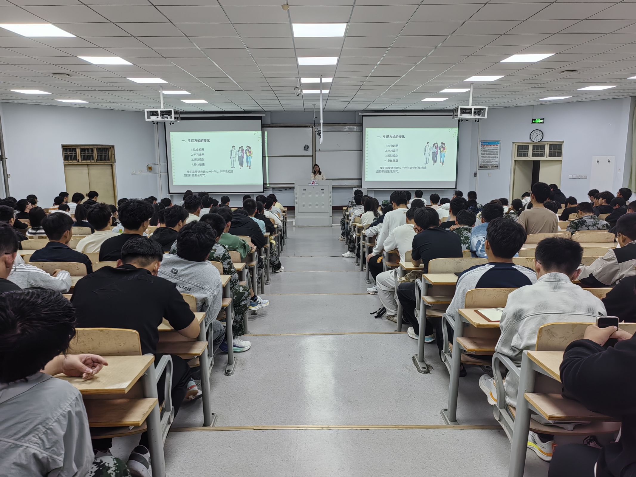 课上,李小亚亲切的与新生交流大学的憧憬与愿望,引出21世纪大学教育的主要任务:学会认知、学会做事、学会共同生活、学会生存。李小亚从大学面临的新变化,常见的适应问题,适应能力的培养三个方面展开讲解,结合实际案例,生动形象的让新生认识到独立生活、自律学习、积极解决问题的重要性。最后她强调,如果学生出现心理困惑时,要积极向学校心理健康中心寻求帮助,学会求助是强者的表现。