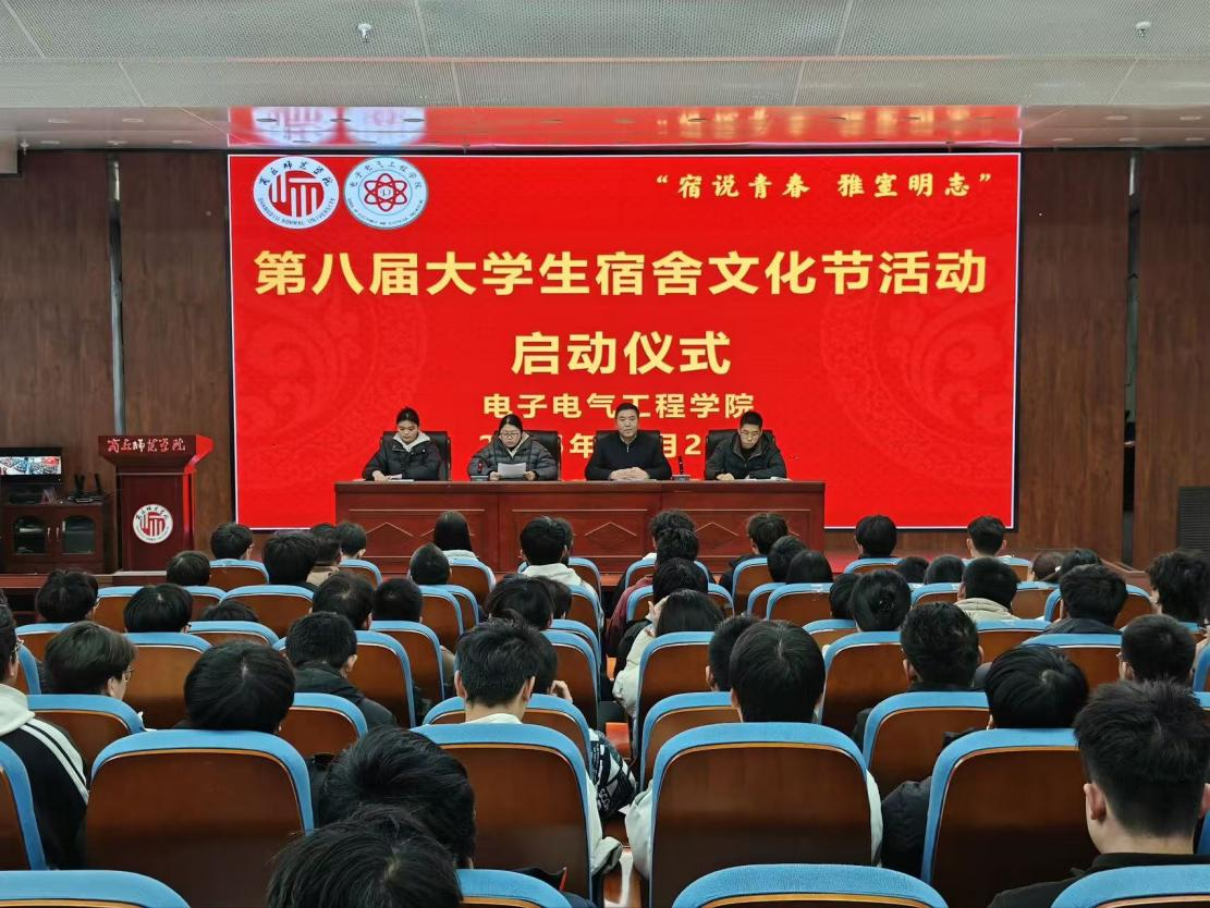 11月21日,我院于睢阳校区工科实训大楼召开“宿说青春,雅室明志”第八届大学生宿舍文化节活动启动仪式。院党委副书记蒋玉涛、学工办主任孙莉娟、辅导员马煊贺、学生会主席团成员齐思然出席仪式。各年级生活委员及25级全体宿舍长参加仪式。