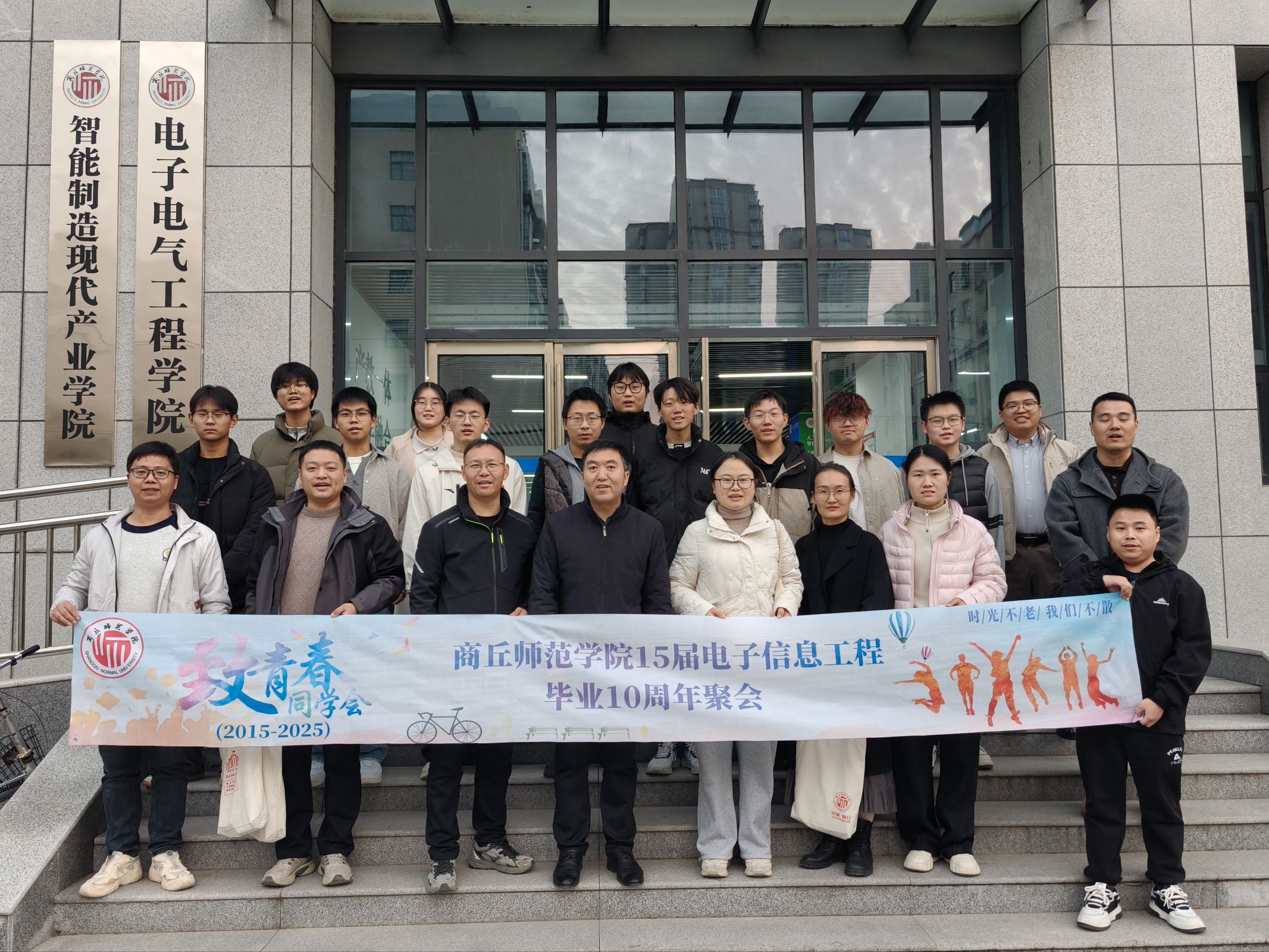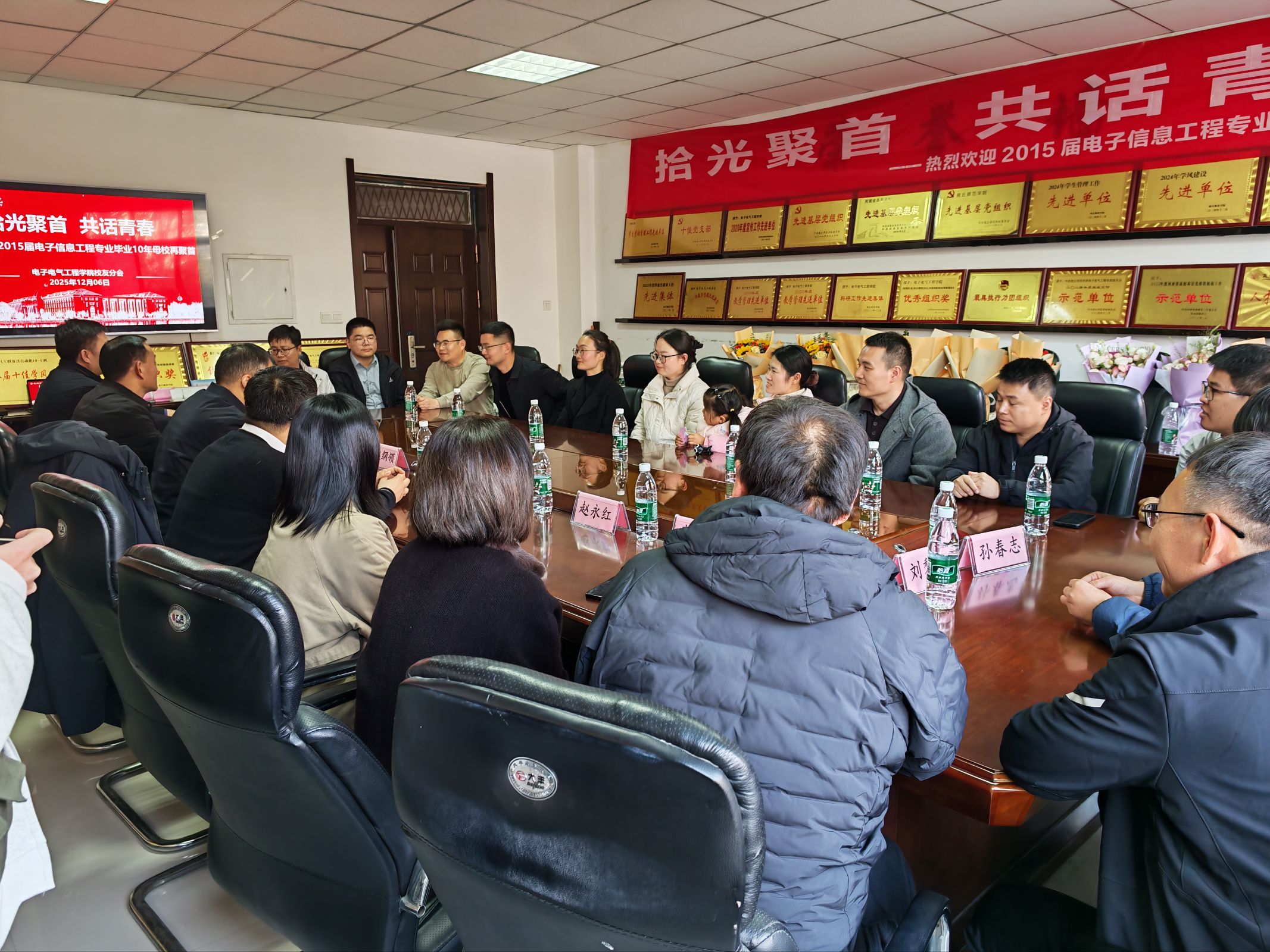 12月6日,2015届电子信息工程专业的校友会跨越山海,从全国各地返回母校,奔赴一场 “拾光聚首 共话青春” 的温情之约。赵纲领、孟学超、朱震杰、李彦敏等多位当年授课指导教师莅临现场,与校友们欢聚一堂,共忆往昔、共叙情谊。活动由学院党委副书记蒋玉涛主持。