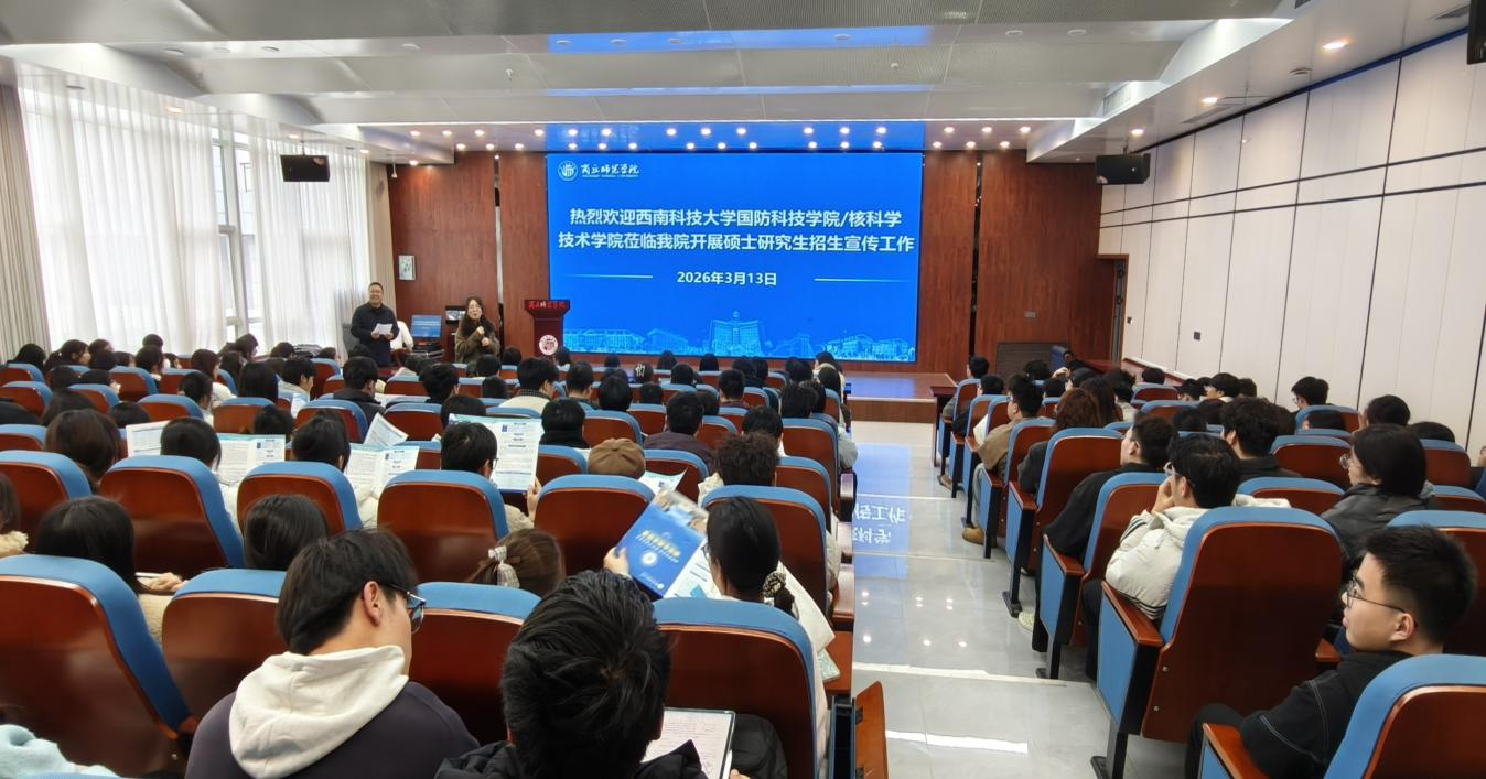 3月13日,我院于睢阳校区工科大楼报告厅举办西南科技大学研究生招生宣讲会。西南科技大学国防科技学院党委书记朱玉颖、核工程与核技术系主任姬彦玲和吕会议老师出席,会议由我院副院长杨同辉主持,大三、大四部分学生参加活动。