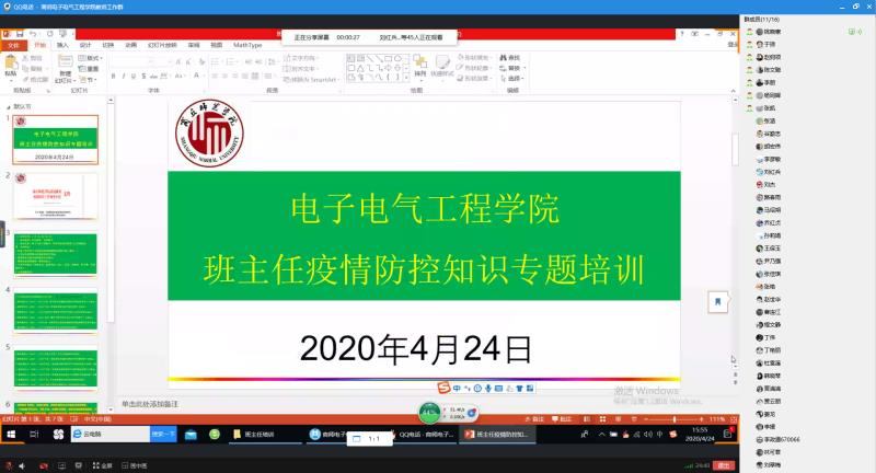 为了进一步掌握疫情防控有关知识,为学生返校复学做好充足准备,威廉williamhill分别于4月20日和24日组织处级干部、辅导员、全体教师和班主任进行了4场集中学习。采取线上和线下相结合,由党总支书记姚晓惠和院长陈文聪领学方式进行,重点学习了教育厅和学校关于新冠肺炎疫情防控的系列文件、大专院校新冠肺炎疫情防控技术方案、网格化管理的架构、职责及意义等内容。