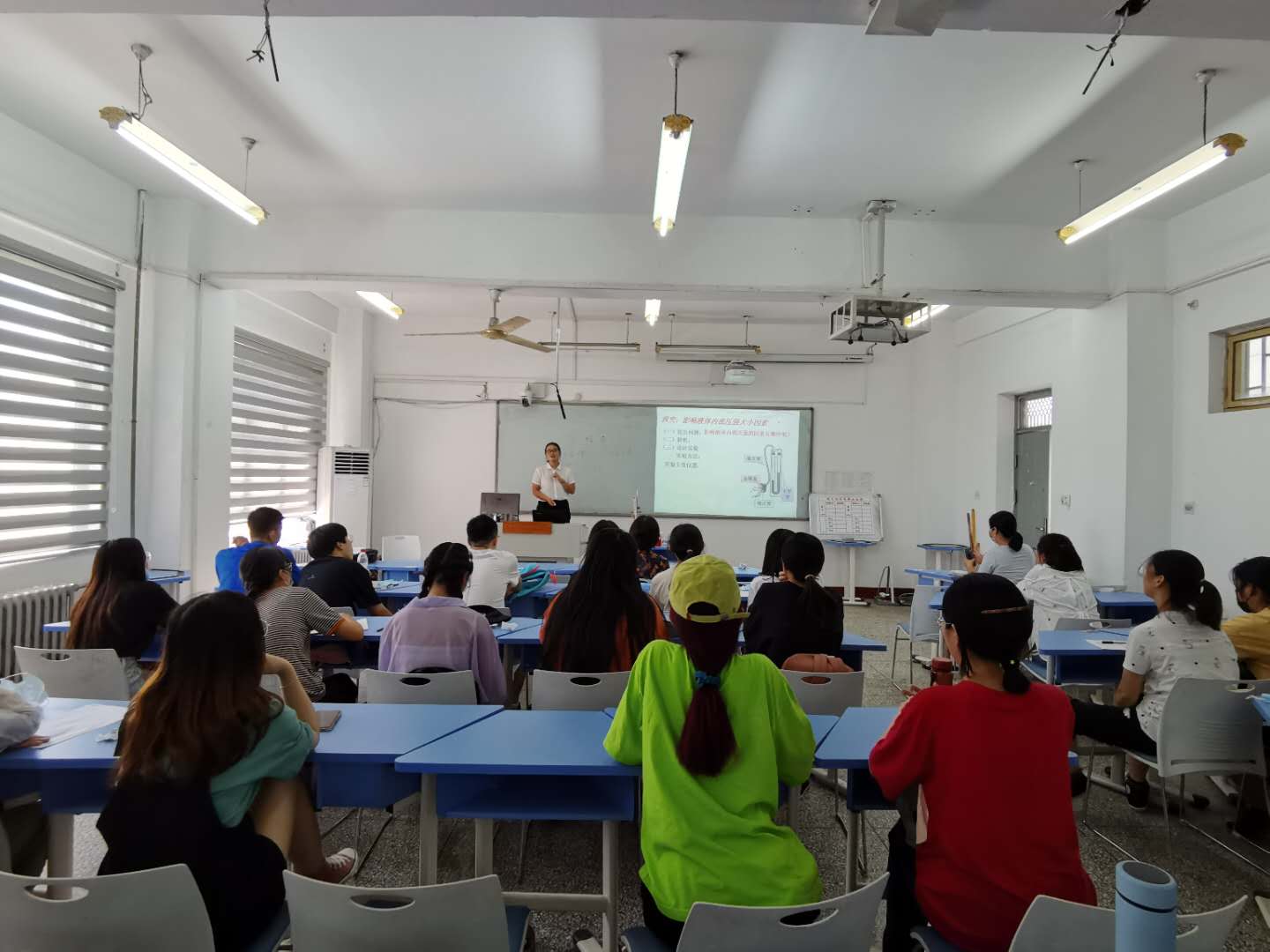2020年9月7日下午,应威廉williamhill邀请,商丘市骨干教师袁文洁老师在睢阳校区物理楼402教室做了一场精彩的中学物理观摩课--液体的压强。校内教育实习指导教师和2021届物理学专业全体学生聆听了此次观摩课。