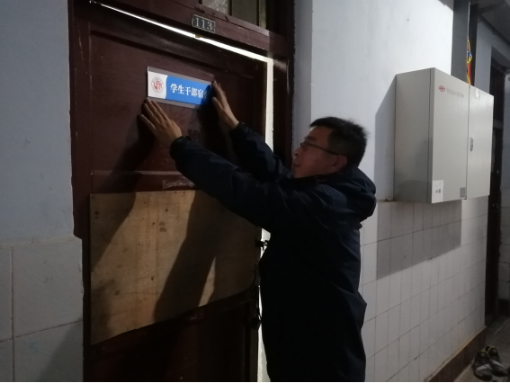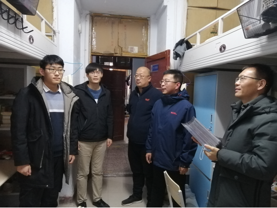 李朋亲自为学生党员、学生干部宿舍挂牌,并带领辅导员、班主任走访相关宿舍,与同学们亲切交谈,从学习、生活等多方面了解学生的情况,对同学遇到的难题及时给予解答,并代表学院表达对同学们的关心和问候。